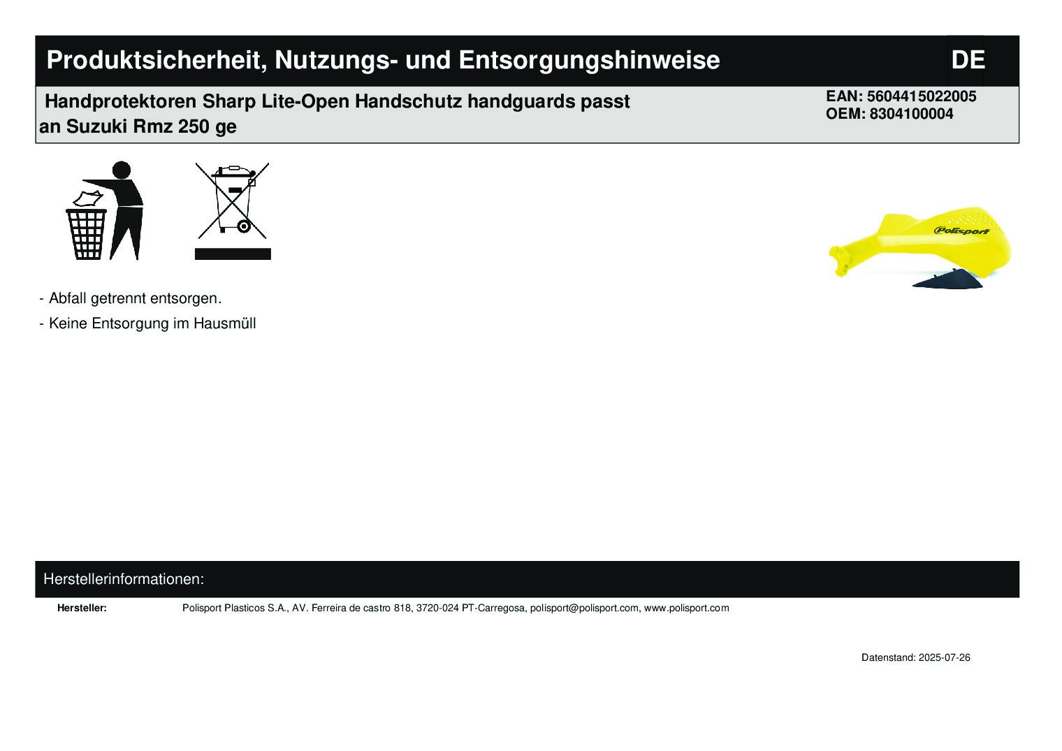 Handprotektoren Sharp Lite-Open Handschutz handguards passt an Suzuki Rmz 250 ge