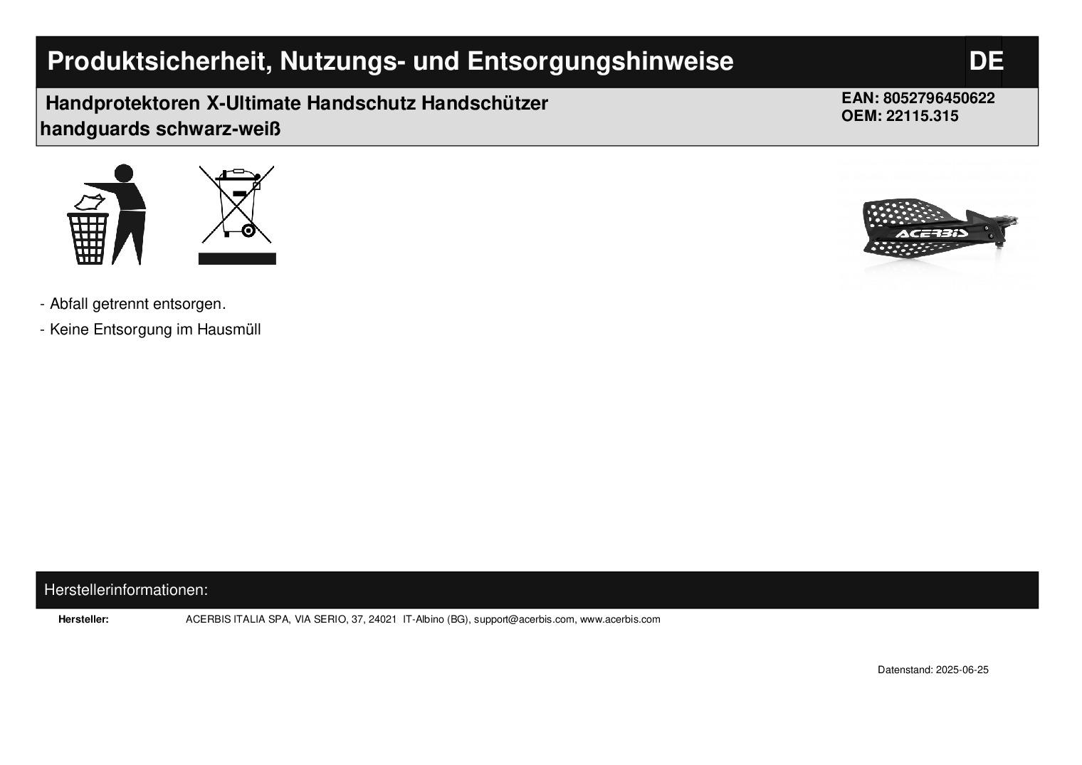 In dieser Auktion gibt es folgenden Artikel zu kaufen: Handguards inkl. Anbaukit (siehe Foto) Fahrzeug: universal Artikelbeschreibung: - Handschutz offen - Halterung aus Nylon - kleine Abdeckungen oben und unten abnehmbar für eine höchstmögliche Belüftung - universale Befestigungsmöglichkeit hinter der Pumpe - horizontal verstellbar - für Lenker mit Außendurchmesser von 22 mm bis 28 mm und Twinwall - inkl. Anbaukit Material: Schutz: 60 % Polypropylen, 5 % andere Materialien Armreifen: 35% Polyamid Lieferumfang: siehe Foto Artikelzustand: neu Bei Unklarheiten oder Fragen bitte erst E-Mail schreiben.