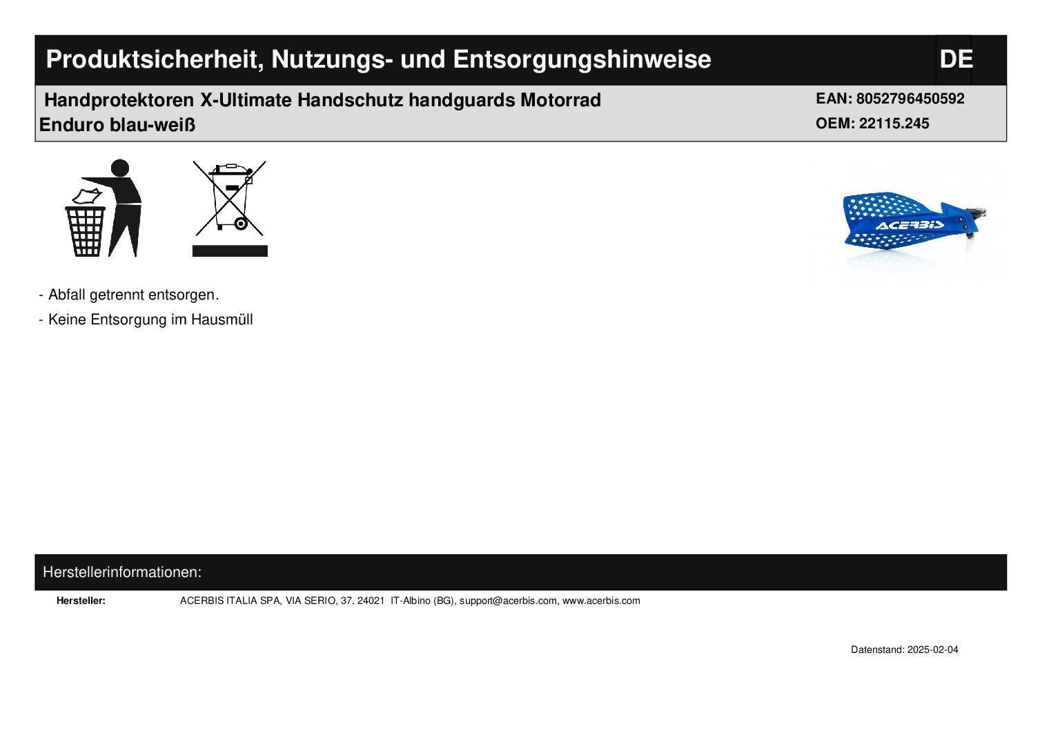 Titel: Handprotektoren X-Ultimate Handschutz handguards Motorrad Enduro blau-weiß