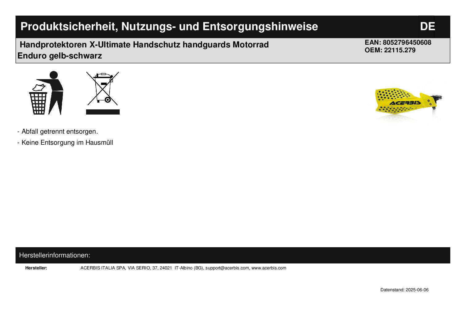 Titel: Handprotektoren X-Ultimate Handschutz handguards Motorrad Enduro gelb-schwarz