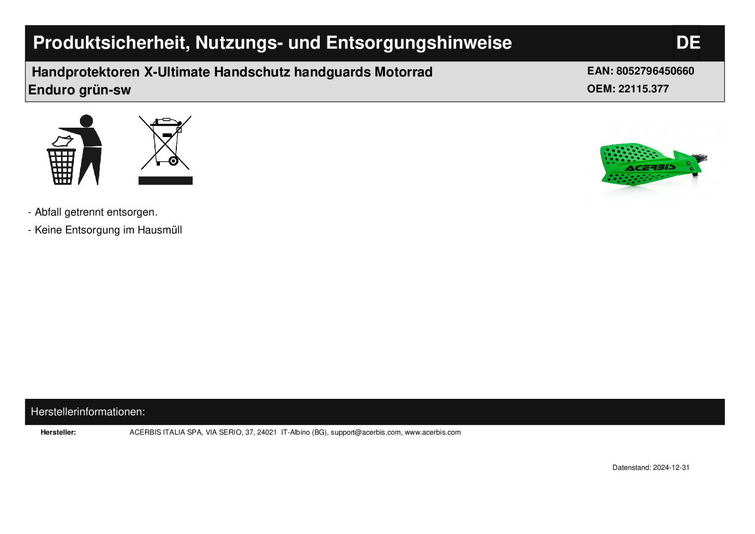Titel: Handprotektoren X-Ultimate Handschutz handguards Motorrad Enduro grün-sw