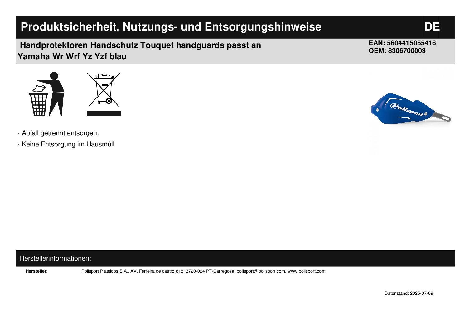Titel: Polisport Touquet Handprotektoren Handschutz handguards Motorrad Enduro Cross bl