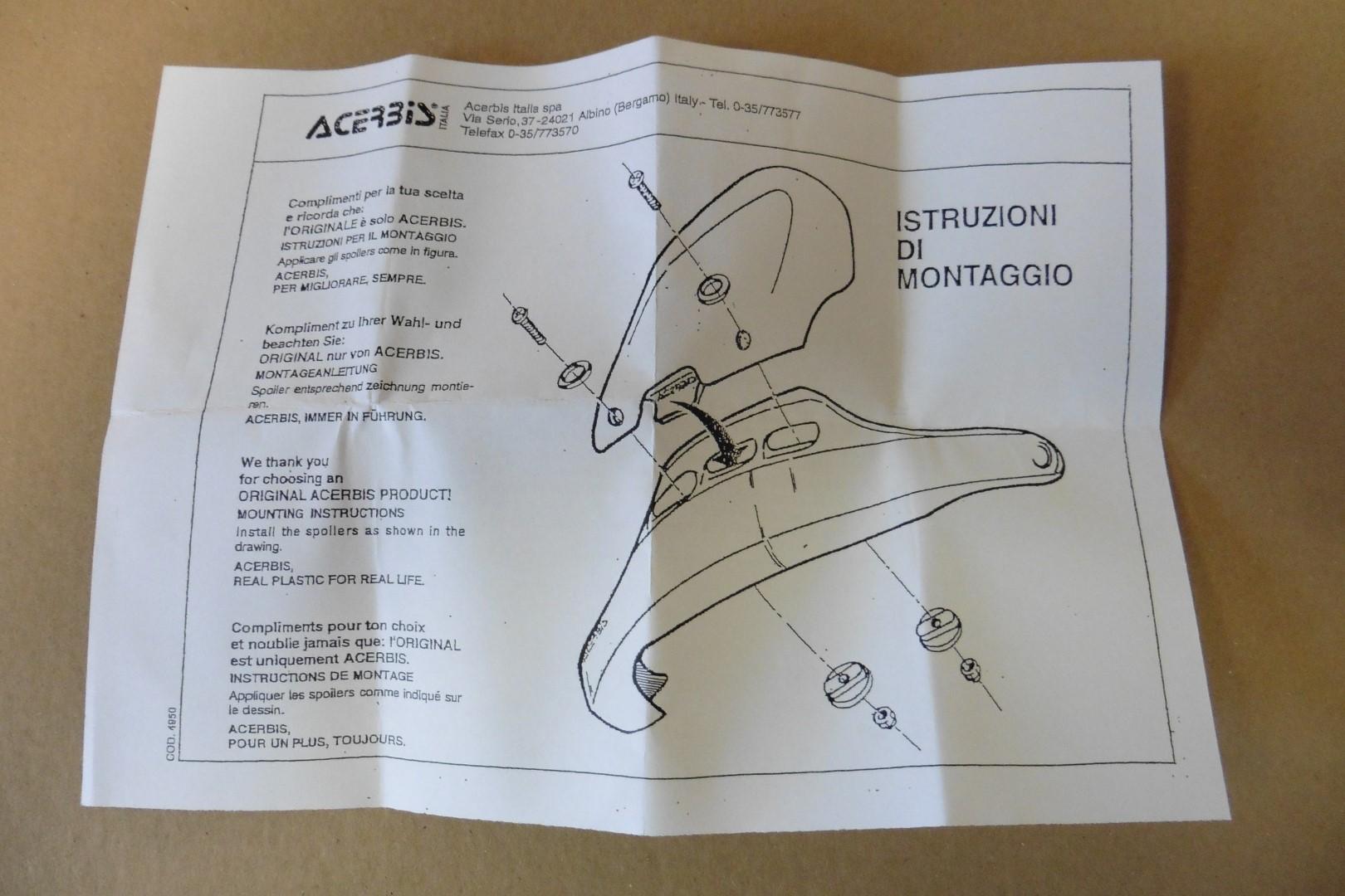 In dieser Auktion gibt es folgenden Artikel zu kaufen: Zusatzspoiler für Acerbis Rally Brush (siehe Foto) Details: Zusatzspoiler werden an Handprotektoren Rally Brush montiert; Befestigungsmaterial wird mitgeliefert Lieferumfang: 1 Paar Artikelzustand: neu Bei Unklarheiten oder Fragen bitte erst E-Mail schreiben.
