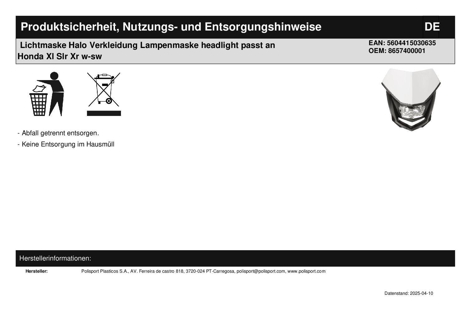Polisport Halo Lichtmaske schwarz/weiß- Lager -