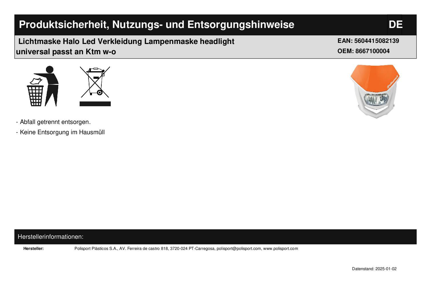 Titel: Lichtmaske Halo universal Led Lampenmaske headlight passt an Ktm weiß-orange