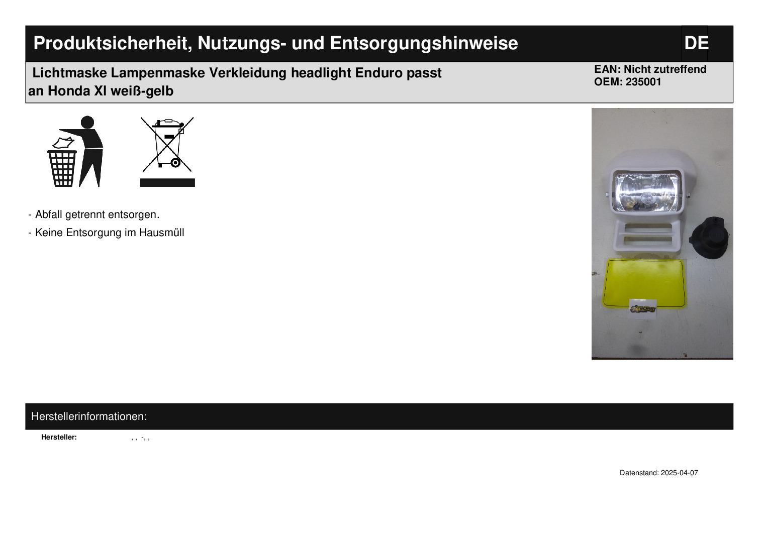 In dieser Auktion gibt es folgenden Artikel zu kaufen: Lichtmaske incl. Anbaukit und Leuchtmittel (siehe Foto) Modell: passend für Honda XL Details: Lichtmaske insgesamt: ca. 26,2 cm breit x 34 cm hoch Bitte Abmaße vor dem Kauf prüfen! E-Zeichen: nein Lieferumfang: siehe Foto Artikelzustand: neu Bei Unklarheiten oder Fragen bitte erst E-Mail schreiben.