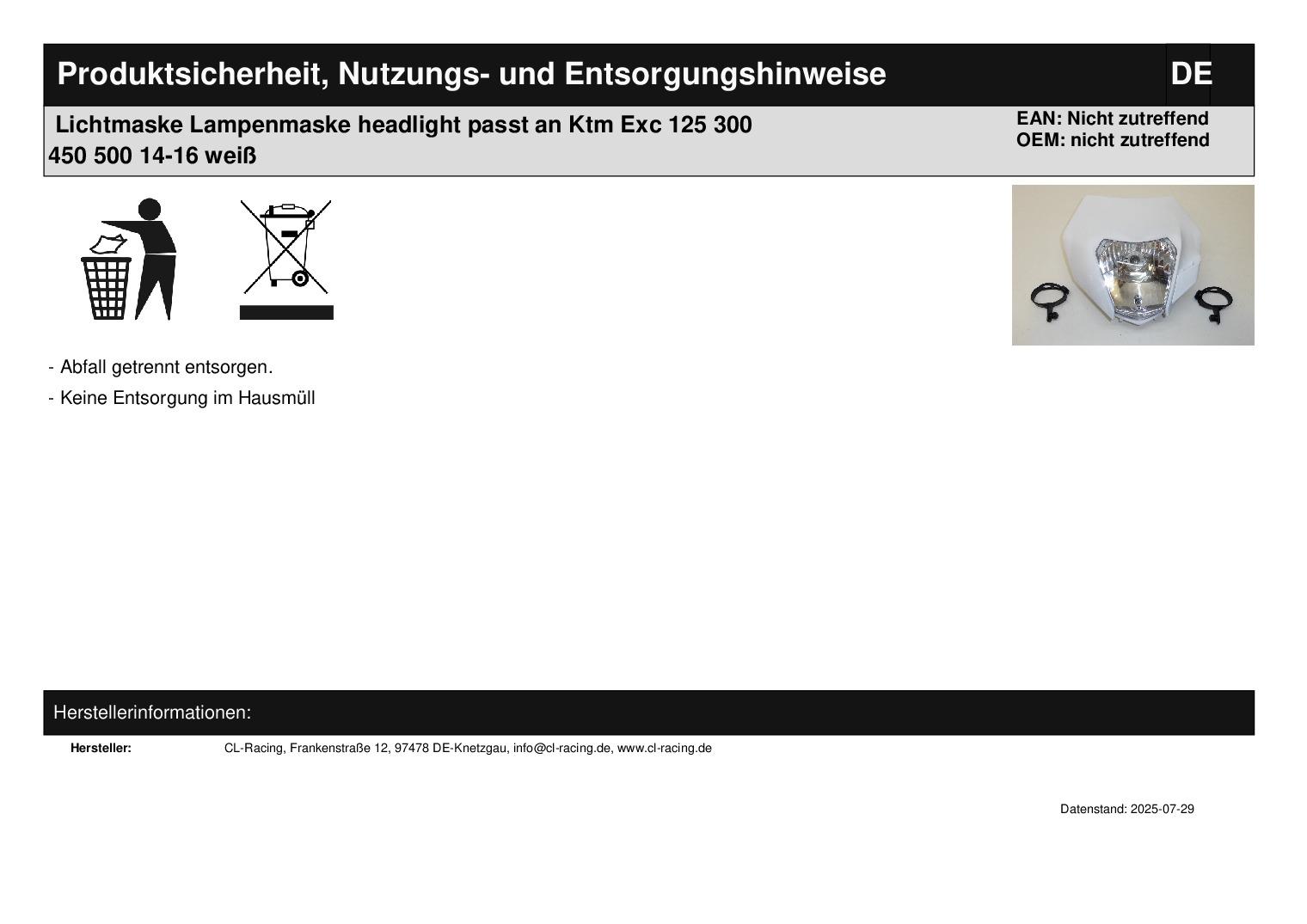Herstellernummer: nicht zutreffend