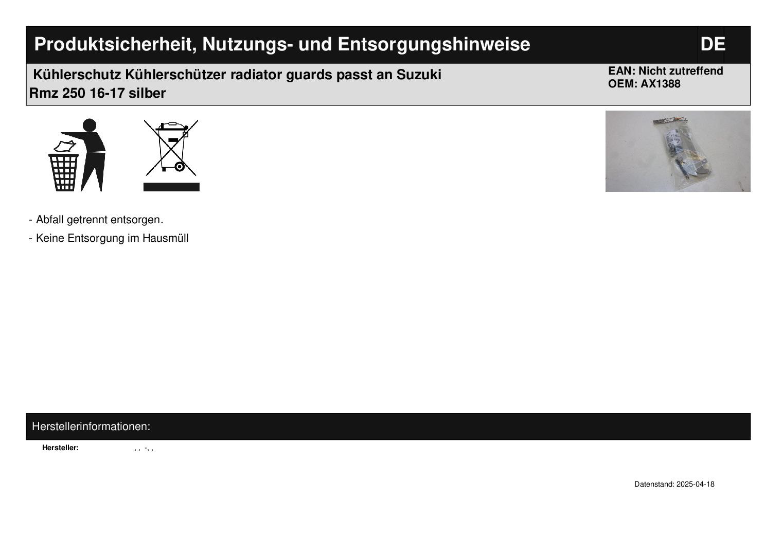 In dieser Auktion gibt es folgenden Artikel zu kaufen: Kühlerschutz (siehe Foto) Modell: passend für Suzuki RMZ 250 Bj.: 16 - 17 Lieferumfang: siehe Foto Artikelzustand: neu aus Geschäftsauflösung, mit minimalen Lagerspuren; Zustand siehe Foto Bei Unklarheiten oder Fragen bitte erst E-Mail schreiben.