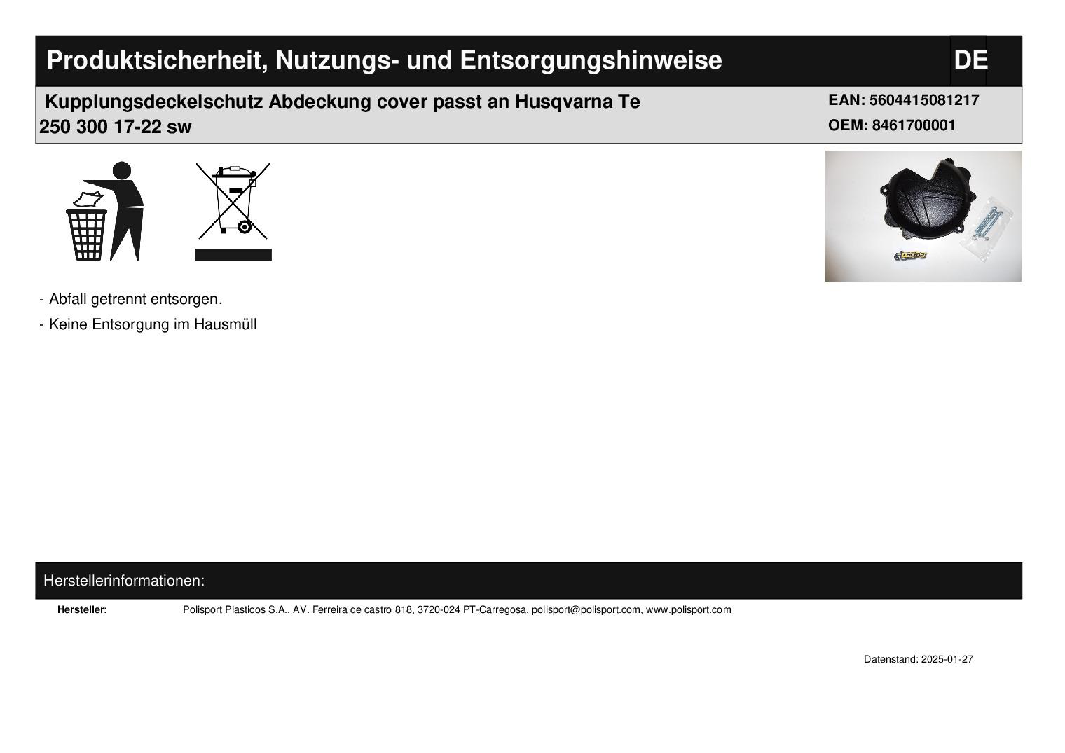 Titel: Kupplungsdeckelschutz Abdeckung cover passt an Husqvarna Te 250 300 17-22 sw