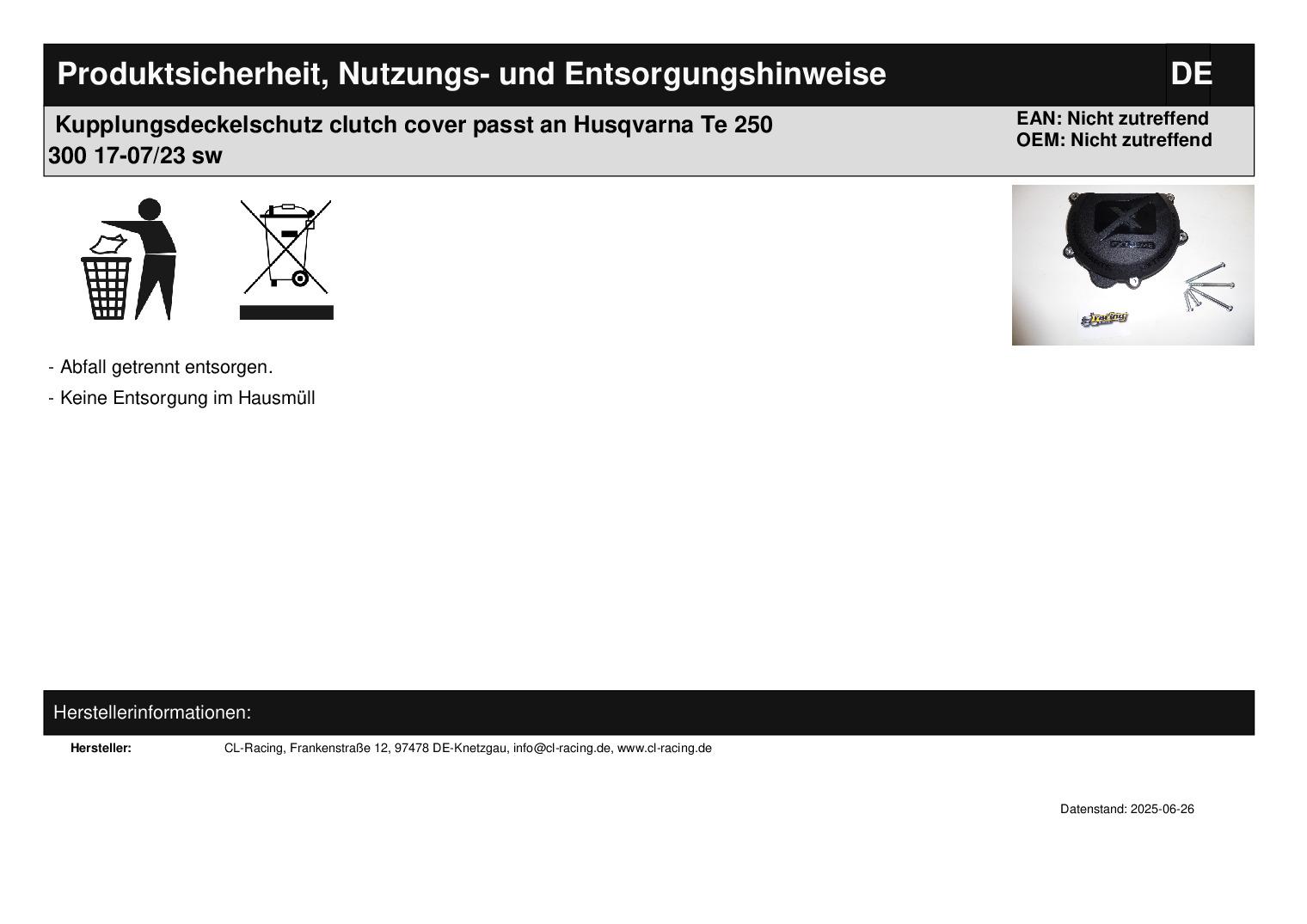 In dieser Auktion gibt es folgenden Artikel zu kaufen: Abdeckung für Kupplungsdeckel (siehe Foto) Modell: passend für Husqvarna TE 250 Bj.: 2017 - 07/2023 TE 300 Bj.: 2017 - 07/2023 Lieferumfang: siehe Foto