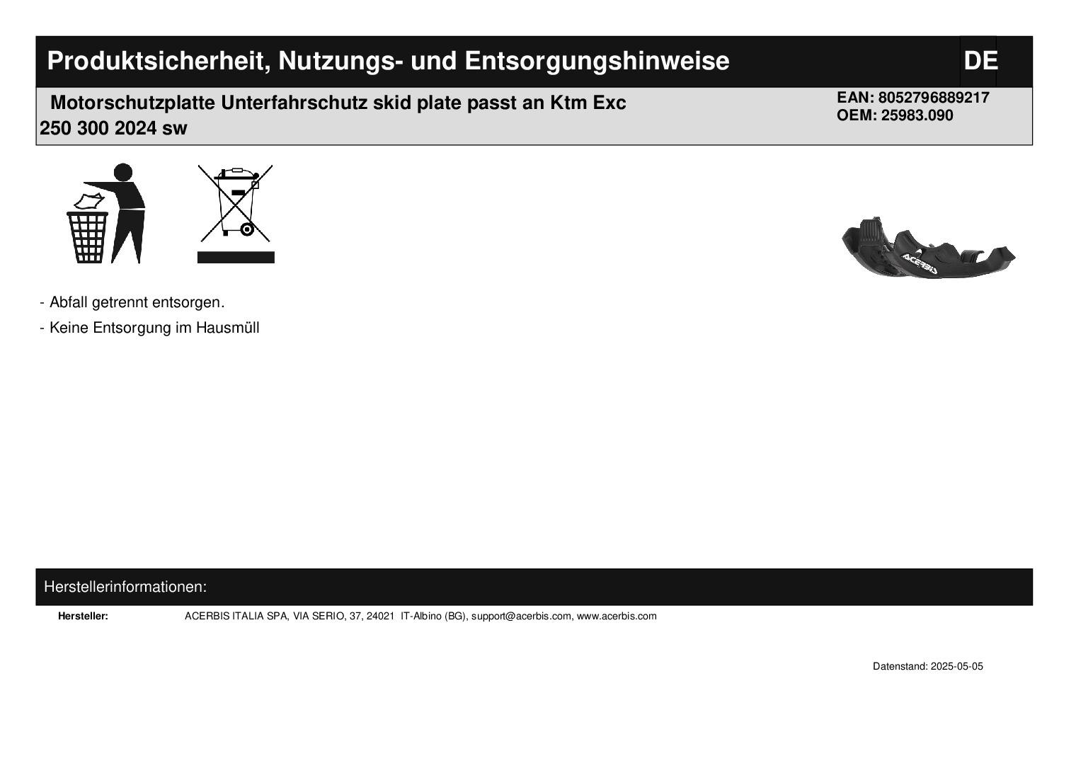In dieser Auktion gibt es folgenden Artikel zu kaufen: Motorschutz (siehe Foto) Modell: passend für KTM Exc 250 TPI Bj.: 2024 - 2025 (2-Takt) Exc 300 TPI Bj.: 2024 - 2025 (2-Takt) Lieferumfang: Motorschutz mit Befestigungskit Artikelzustand: neu Hierbei handelt es sich um kein Originalteil! Bei Unklarheiten oder Fragen bitte erst E-Mail schreiben.