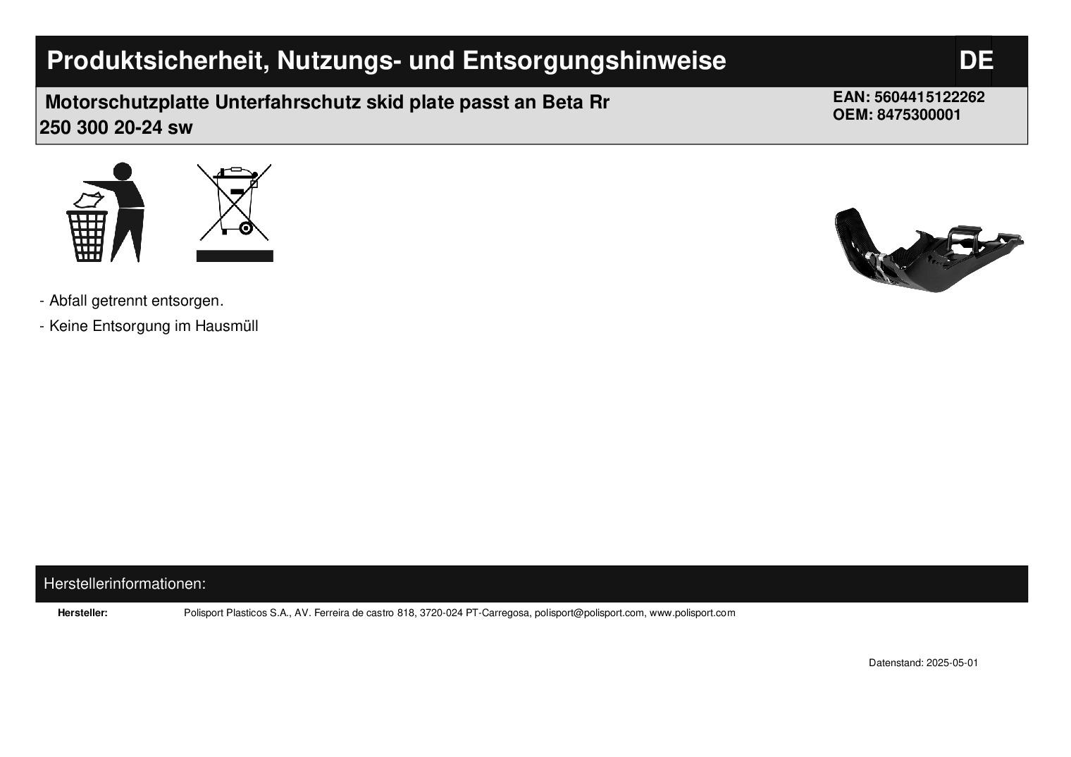 In dieser Auktion gibt es folgenden Artikel zu kaufen: Motorschutz (ähnlich Foto) Modell: passend für Beta RR 250 Bj.: 20 - 24 RR 300 Bj.: 20 - 24 Lieferumfang: siehe Foto