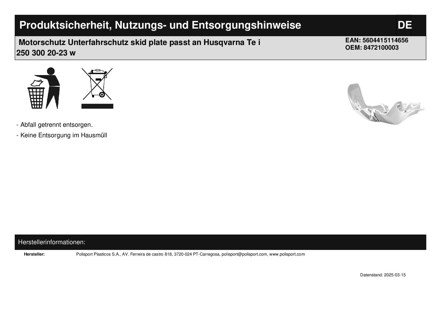 In dieser Auktion gibt es folgenden Artikel zu kaufen: Motorschutz (ähnlich Foto) Modell: passend für Husqvarna TC 250 Bj.: 2019 - 2022 TE i 250, 300 Bj.: 2020 - 2023 passend für Ktm SX 250 Bj.: 2019 - 2022 Lieferumfang: siehe Foto Artikelzustand: neu Es handelt sich hierbei um kein Originalteil! Bei Unklarheiten oder Fragen bitte erst E-Mail schreiben.