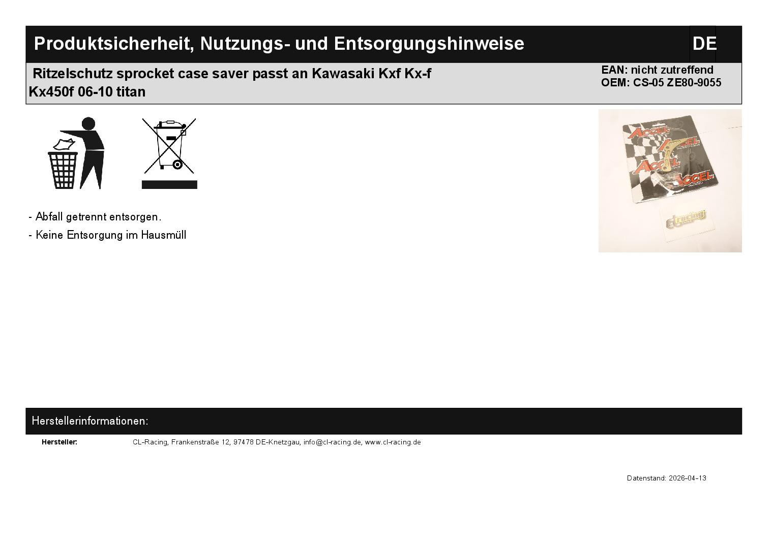 Titel: Ritzelschutz sprocket case saver passt an Kawasaki Kxf Kx-f Kx450f 06-10 titan