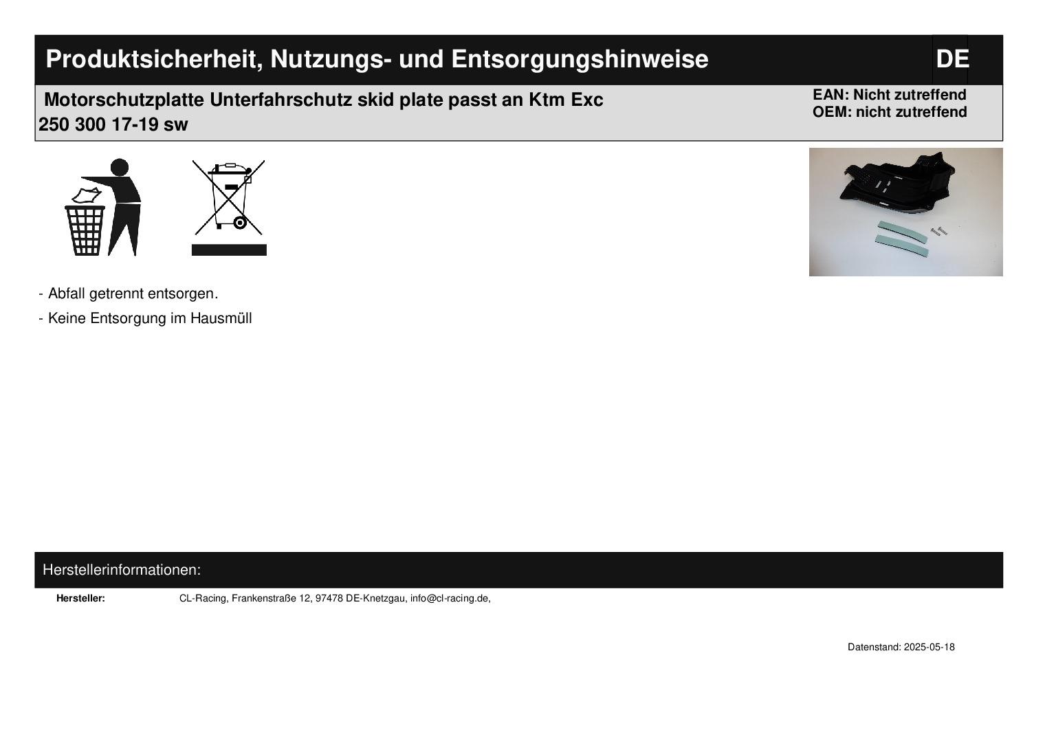 In dieser Auktion gibt es folgenden Artikel zu kaufen: robuster Motorschutz mit Anbauteilen (siehe Foto) Fahrzeug: passend für Ktm Exc 250 ab Modell 2017/2018 Bj.: 07.2016 - 2019 (2-Takt) Exc 300 ab Modell 2017/2018 Bj.: 07.2016 - 2019 (2-Takt) passend für Husqvarna Te, Tc 250 ab Modell 2017 Bj.: 07.2016 - 2019 (2-Takt) Te, Tc 300 ab Modell 2017 Bj.: 07.2016 - 2019 (2-Takt) Artikelbeschreibung: Dieser Unterfahrschutz bietet idealen Schutz des Motors und des Rahmens vor Steinschlägen oder ähnlichem. Material: Kunststoff (ABS) Lieferumfang: Motorschutz inkl. Anbauteile Artikelzustand: neu Es handelt sich hierbei um kein Originalteil Bei Unklarheiten oder Fragen bitte erst E-Mail schreiben.
