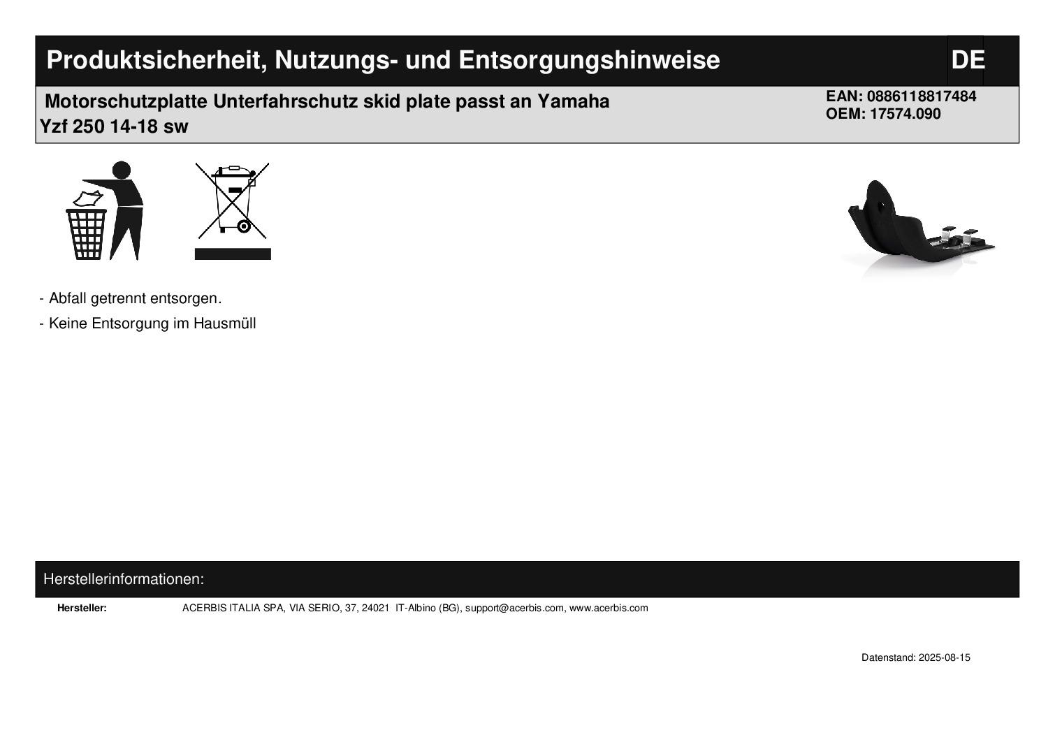 In dieser Auktion gibt es folgenden Artikel zu kaufen: Motorschutzplatte (siehe Foto) Modell: für Yamaha Yz-f 250 Bj.: 2014 - 2018 (4-Takt) Yz-f 450 Bj.: 2014 - 2017 (4-Takt) Lieferumfang: Kunststoff-Motorschutz mit Befestigungskit Artikelzustand: neu Bei Unklarheiten oder Fragen bitte erst E-Mail schreiben.