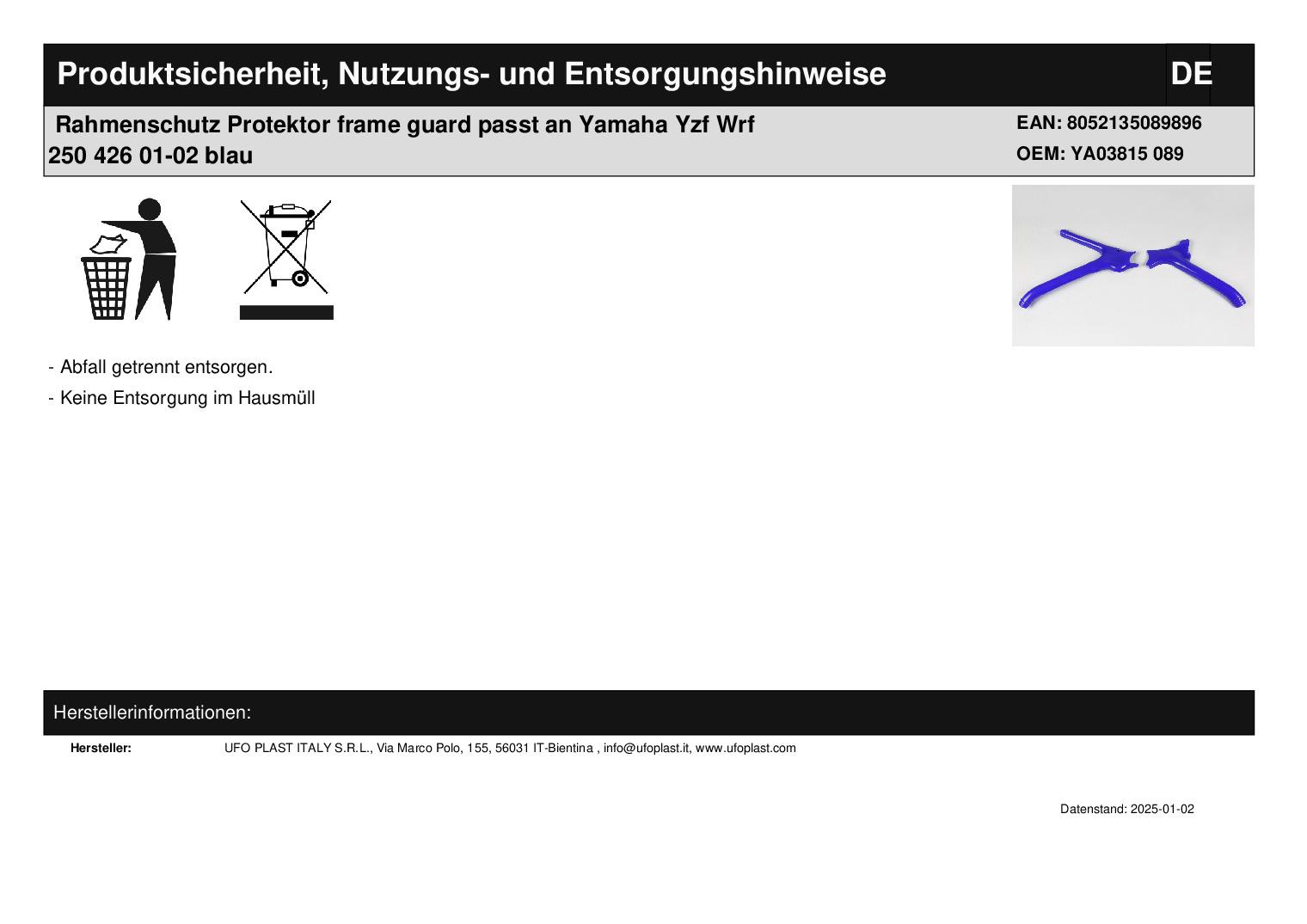 In dieser Auktion gibt es folgenden Artikel zu kaufen: Rahmenschutz (siehe Foto) Fahrzeug: passend für Yamaha WRF YZF 250 Bj.: 01 - 02 WRF YZF 400 Bj.: 98 - 99 WRF YZF 426 Bj.: 00 - 02 Lieferumfang: siehe Foto Artikelzustand: neu Bei Unklarheiten oder Fragen bitte erst E-Mail schreiben.