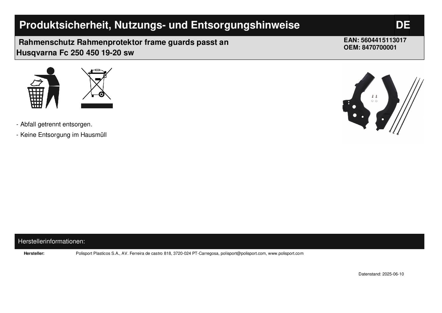Titel: Rahmenschutz Rahmenprotektor frame guards passt an Husqvarna Fc 250 450 19-20 sw