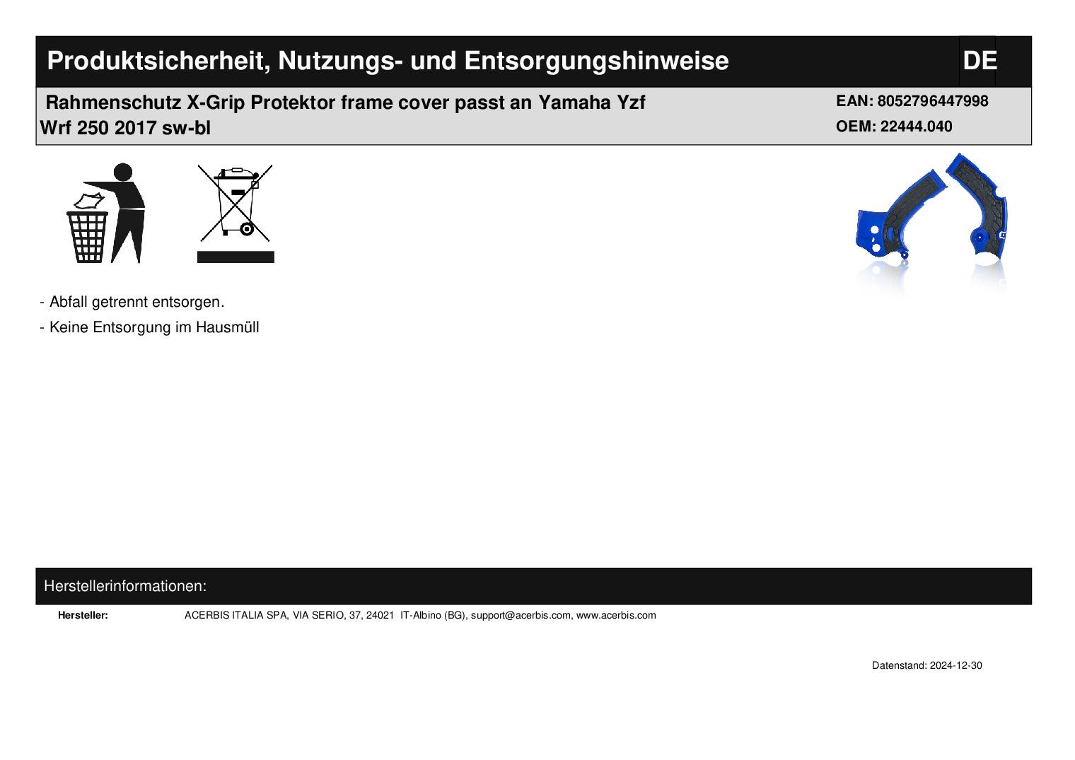 Titel: Rahmenschutz X-Grip Protektor frame cover passt an Yamaha Yzf Wrf 250 2017 sw-bl