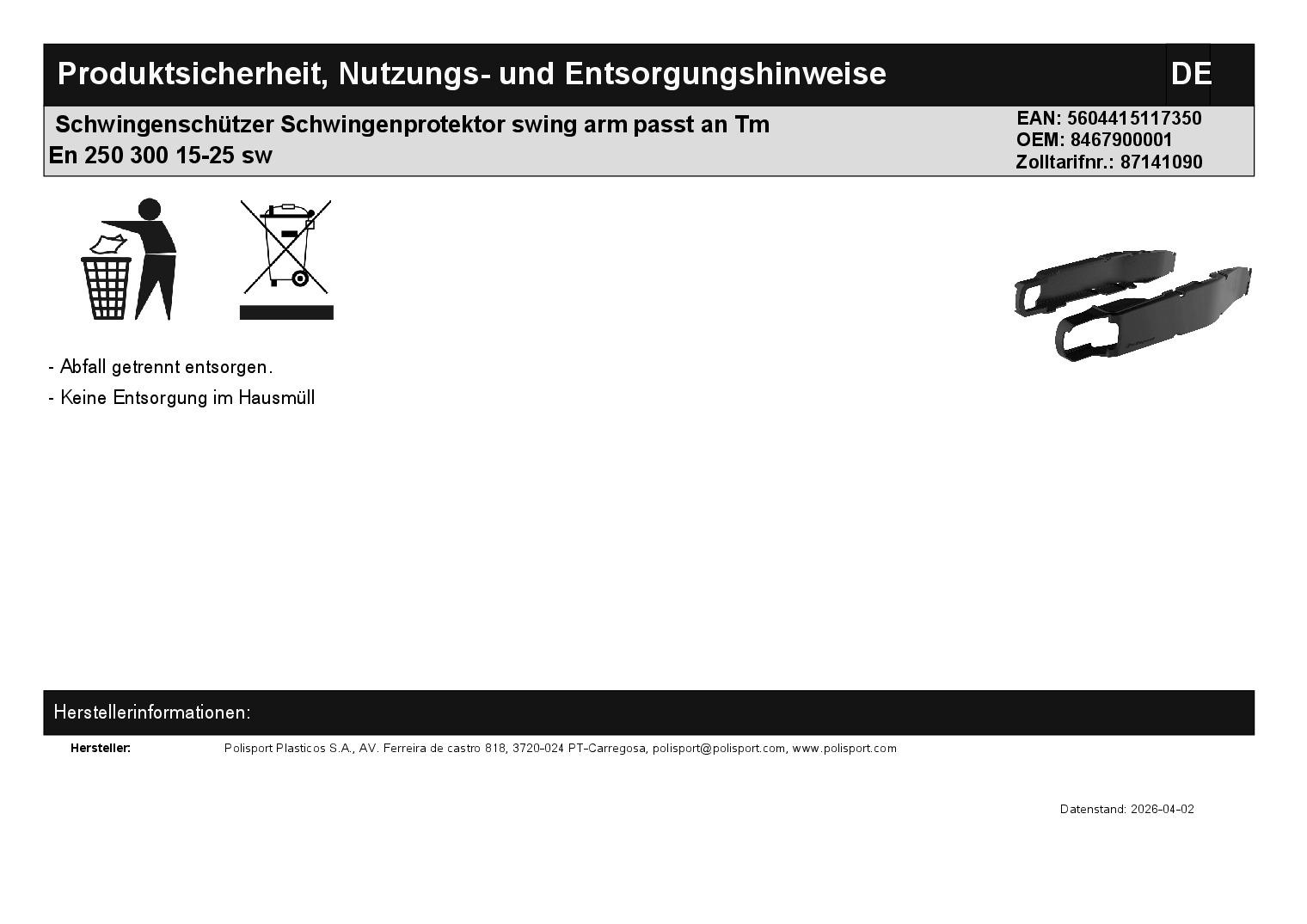 In dieser Auktion gibt es folgenden Artikel zu kaufen: Schwingenschützer (ähnlich Foto) Modell: passend für TM EN 125, 144, 250, 300, 400 Bj.: 15 - 25 EN F 250, 450, 530 Bj.: 15 - 25 MX 125, 144, 250, 300, 320, 400, 530 Bj.: 15 - 25 MX F 250, 450 Bj.: 15 - 25 Lieferumfang: siehe Foto Artikelzustand: neu Hierbei handelt es sich um kein Originalteil! Bei Unklarheiten oder Fragen bitte erst E-Mail schreiben.