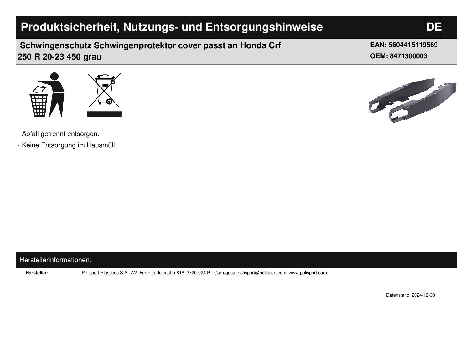 Titel: Schwingenschutz Schwingenprotektor cover passt an Honda Crf 250 R 20-23 450 grau