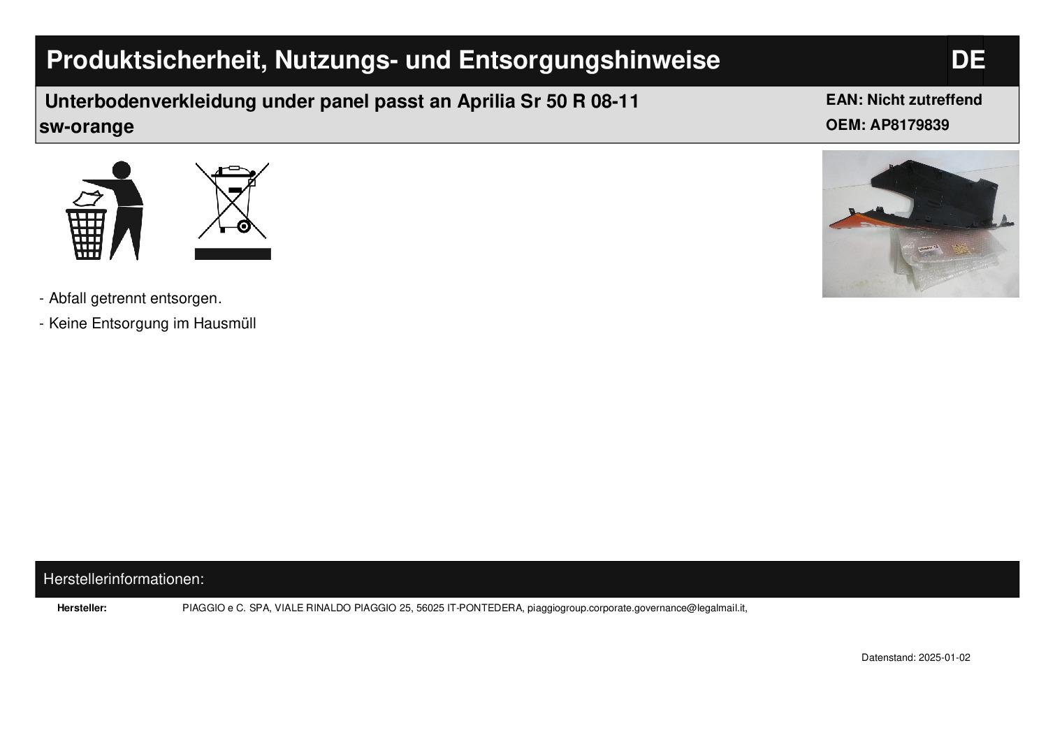In dieser Auktion gibt es folgenden Artikel zu kaufen: Unterbodenverkleidung (siehe Foto) Modell: passend für Aprilia SR 50 R Bj.: 08 - 11 Lieferumfang: siehe Foto Artikelzustand: neu aus Geschäftsauflösung, mit minimalen Lagerspuren; Zustand siehe Foto Bei Unklarheiten oder Fragen bitte erst E-Mail schreiben.