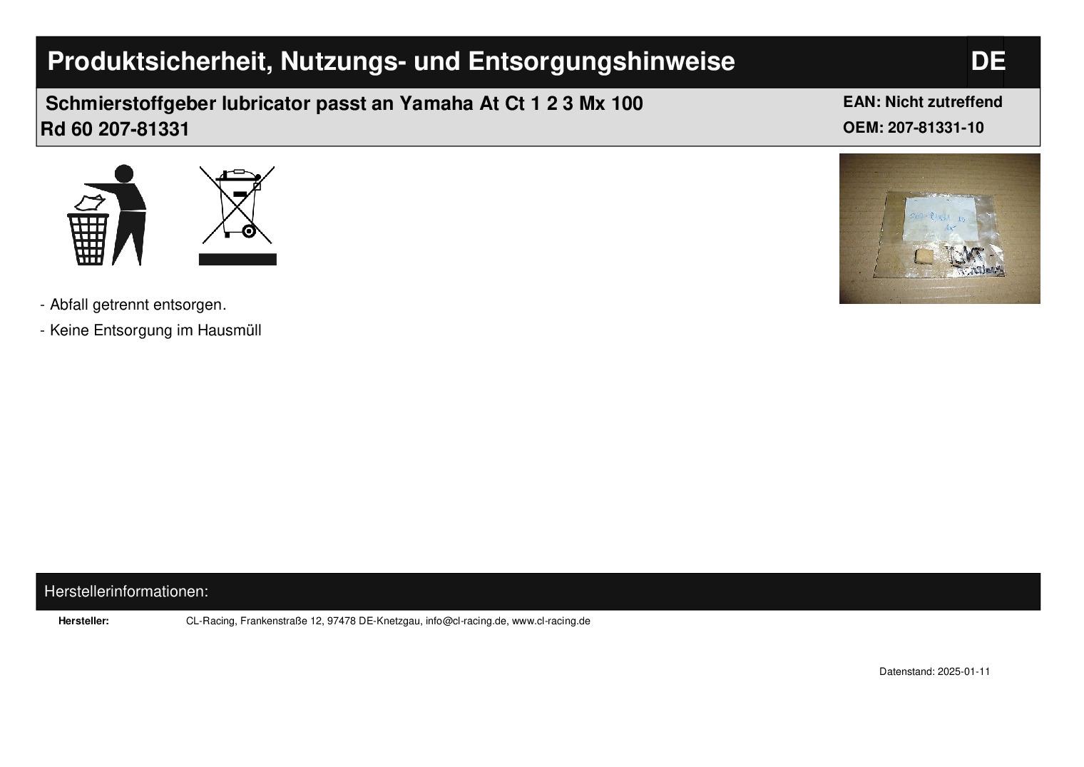 Titel: Schmierstoffgeber lubricator passt an Yamaha At Ct 1 2 3 Mx 100 Rd 60 207-81331