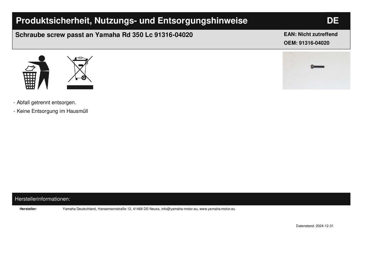 In dieser Auktion gibt es folgenden Artikel zu kaufen: Schraube (siehe Foto) Modell: passend für Yamaha RD 350 Lc Bj.: 86 Lieferumfang: siehe Foto Artikelzustand: neu aus Geschäftsauflösung, mit minimalen Lagerspuren; Zustand siehe Foto Bei Unklarheiten oder Fragen bitte erst E-Mail schreiben.