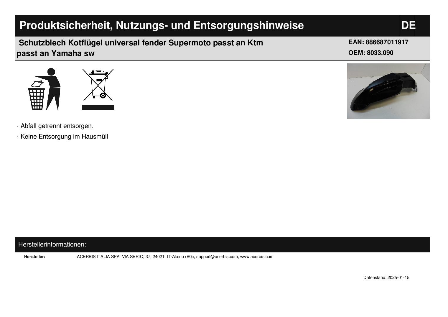 Schutzblech Kotflügel universal fender Supermoto passt an Ktm passt an Yamaha sw