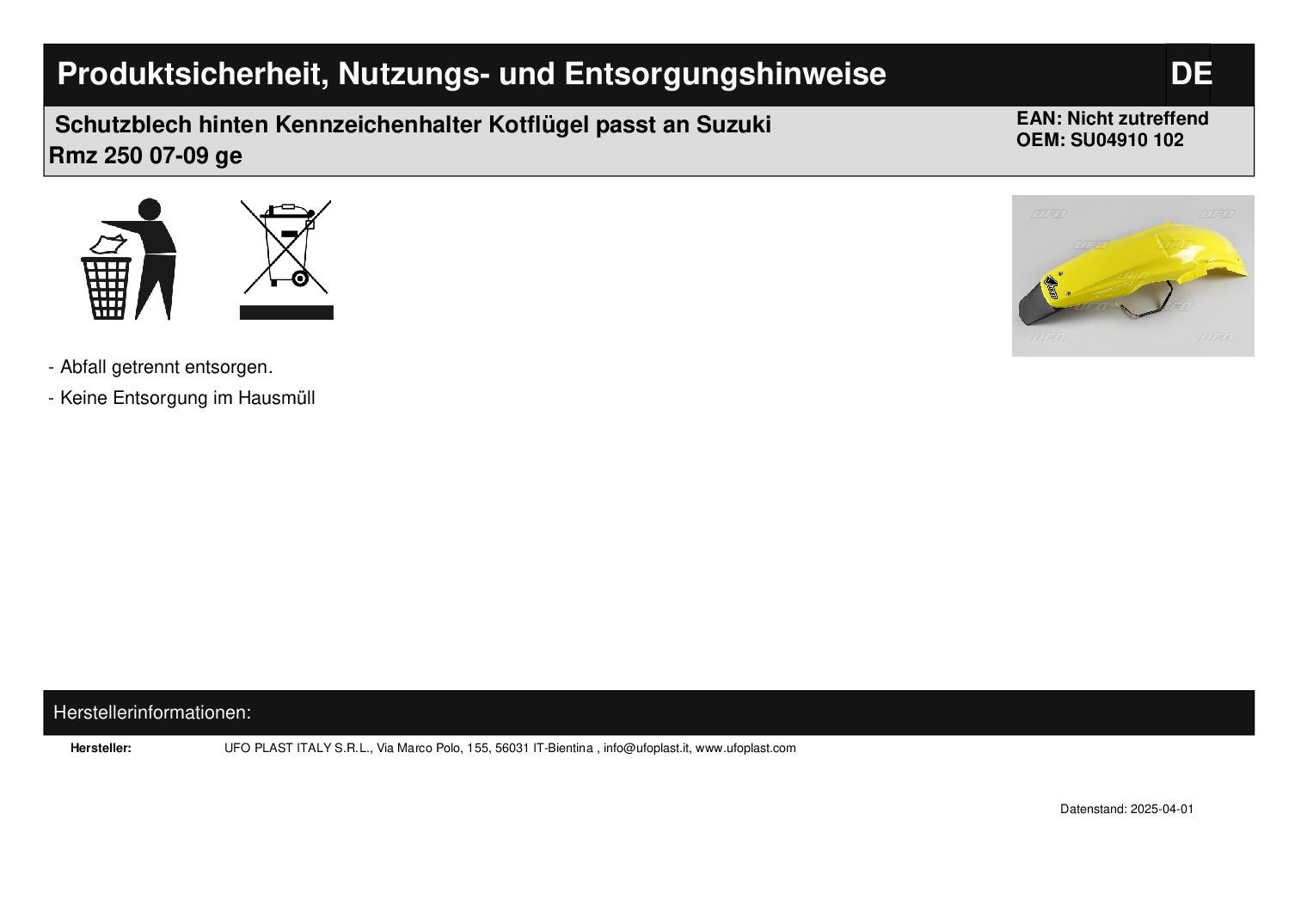 In dieser Auktion gibt es folgenden Artikel zu kaufen: Schutzblech inkl. Kennzeichenhalter und Rücklicht (ähnlich Foto) Fahrzeug: passend für Suzuki RMZ 250 Bj.: 07 - 09 (4-Takt) Lieferumfang: siehe Foto Artikelzustand: neu aus Geschäftsauflösung, mit leichten Lagerspuren; Zustand ähnlich Foto Bei Unklarheiten oder Fragen bitte erst E-Mail schreiben.
