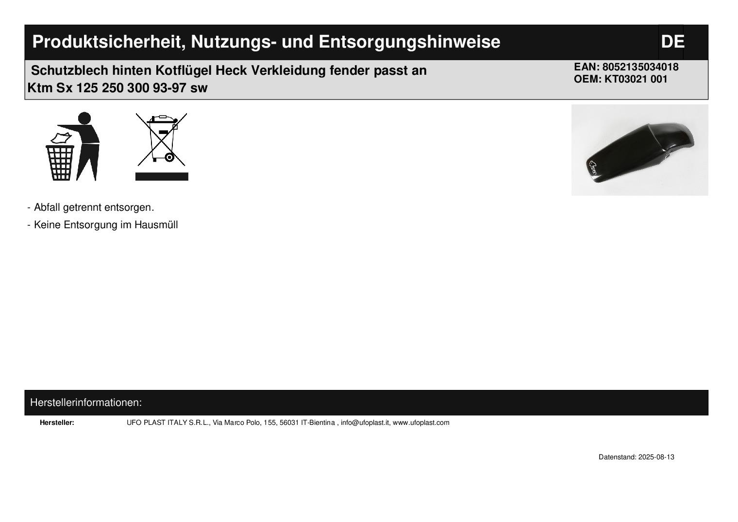 In dieser Auktion gibt es folgenden Artikel zu kaufen: Schutzblech (siehe Foto) Fahrzeug: passend für KTM SX 125, 250, 300 Bj.: 93 - 97 SX 360 Bj.: 96 - 97 Lieferumfang: siehe Foto Artikelzustand: neu Hierbei handelt es sich um kein Originalteil! Bei Unklarheiten oder Fragen bitte erst E-Mail schreiben.