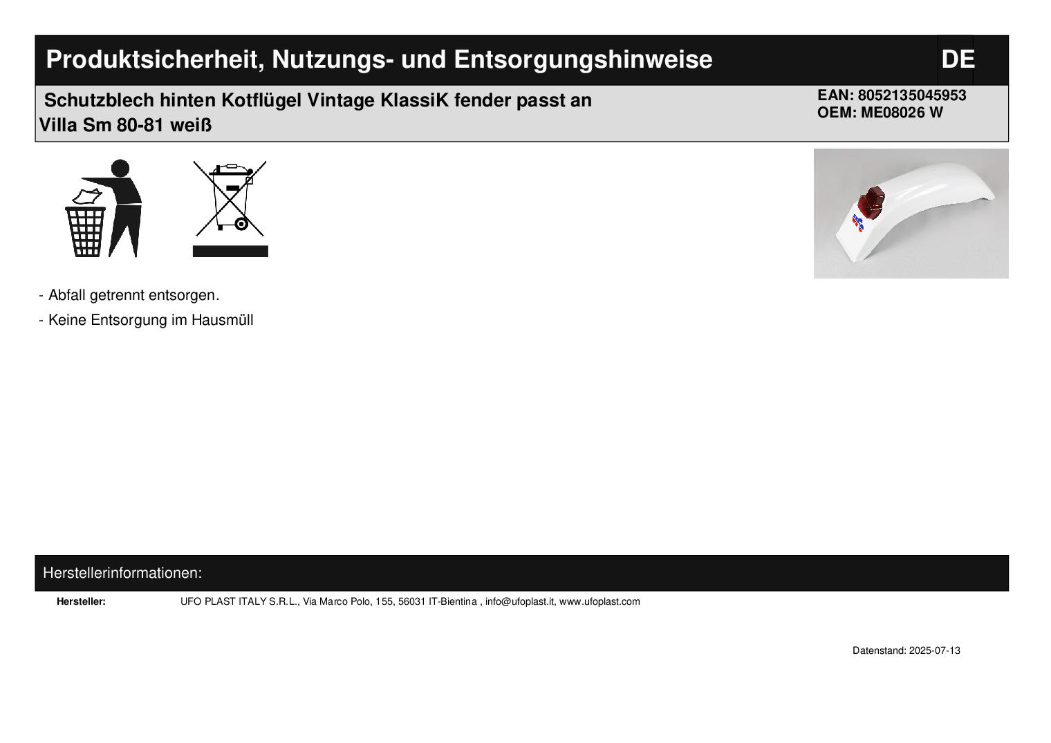 In dieser Auktion gibt es folgenden Artikel zu kaufen: Schutzblech hinten mit Rücklicht (siehe Foto) Fahrzeug: passend für Klassik-Bikes passend für universal ab 125 - 500 ccm Bj.: 1979 - 1989 passend für Villa SM Bj.: 1980 - 1981 Details: ohne E-Zeichen Breite gesamt: ca. 18 cm Lieferumfang: siehe Foto, ohne Birne! Artikelzustand: neu Es handelt sich hierbei um kein Originalteil Bei Unklarheiten oder Fragen bitte erst E-Mail schreiben.