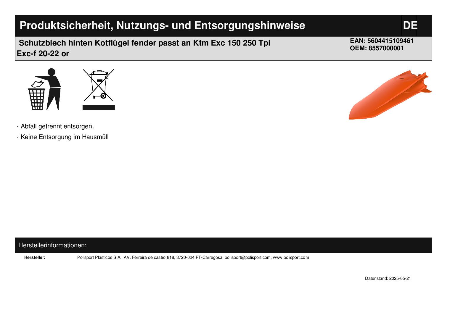 In dieser Auktion gibt es folgenden Artikel zu kaufen: Schutzblech hinten (siehe Foto) Fahrzeug: passend für Ktm Exc 150 TPI Bj.: 2020 - 2022 (2-Takt) Exc 250 TPI Bj.: 2020 - 2022 (2-Takt) Exc 300 TPI Bj.: 2020 - 2022 (2-Takt) Exc-f 250 Bj.: 2020 - 2022 (4-Takt) Exc-f 350 Bj.: 2020 - 2021 (4-Takt) Exc-f 450 Bj.: 2020 - 2022 (4-Takt) Exc-f 500 Bj.: 2020 - 2022 (4-Takt) Lieferumfang: siehe Foto Artikelzustand: neu Es handelt sich hierbei um kein Originalteil Bei Unklarheiten oder Fragen bitte erst E-Mail schreiben.