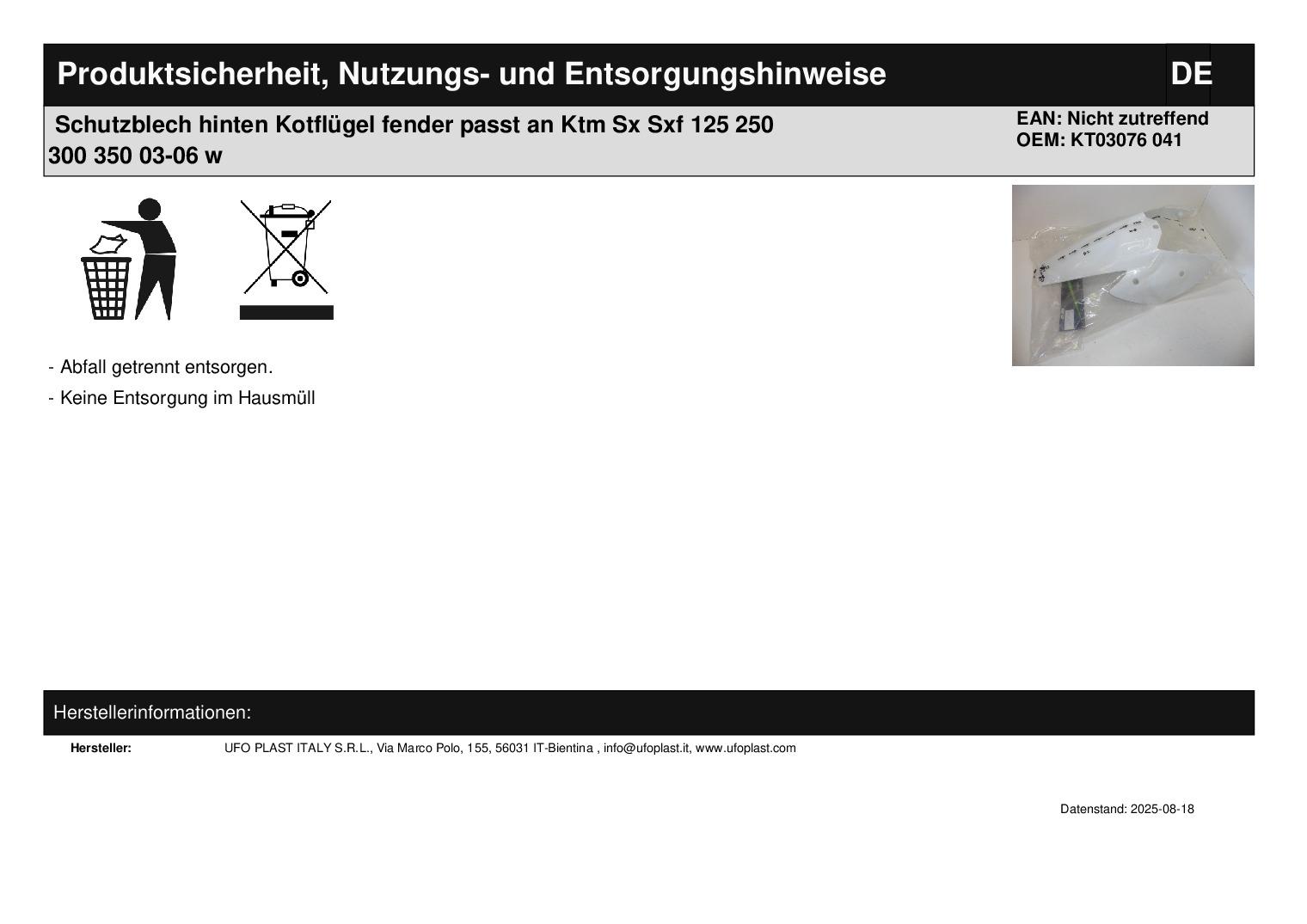 In dieser Auktion gibt es folgenden Artikel zu kaufen: Schutzblech (siehe Foto) Fahrzeug: passend für Ktm Sx-, Sxf-Modelle 125-450 ccm Bj.: 03 - 06 (2+4-Takt) Lieferumfang: siehe Foto Artikelzustand: neu Es handelt sich hierbei um kein Originalteil Bei Unklarheiten oder Fragen bitte erst E-Mail schreiben.