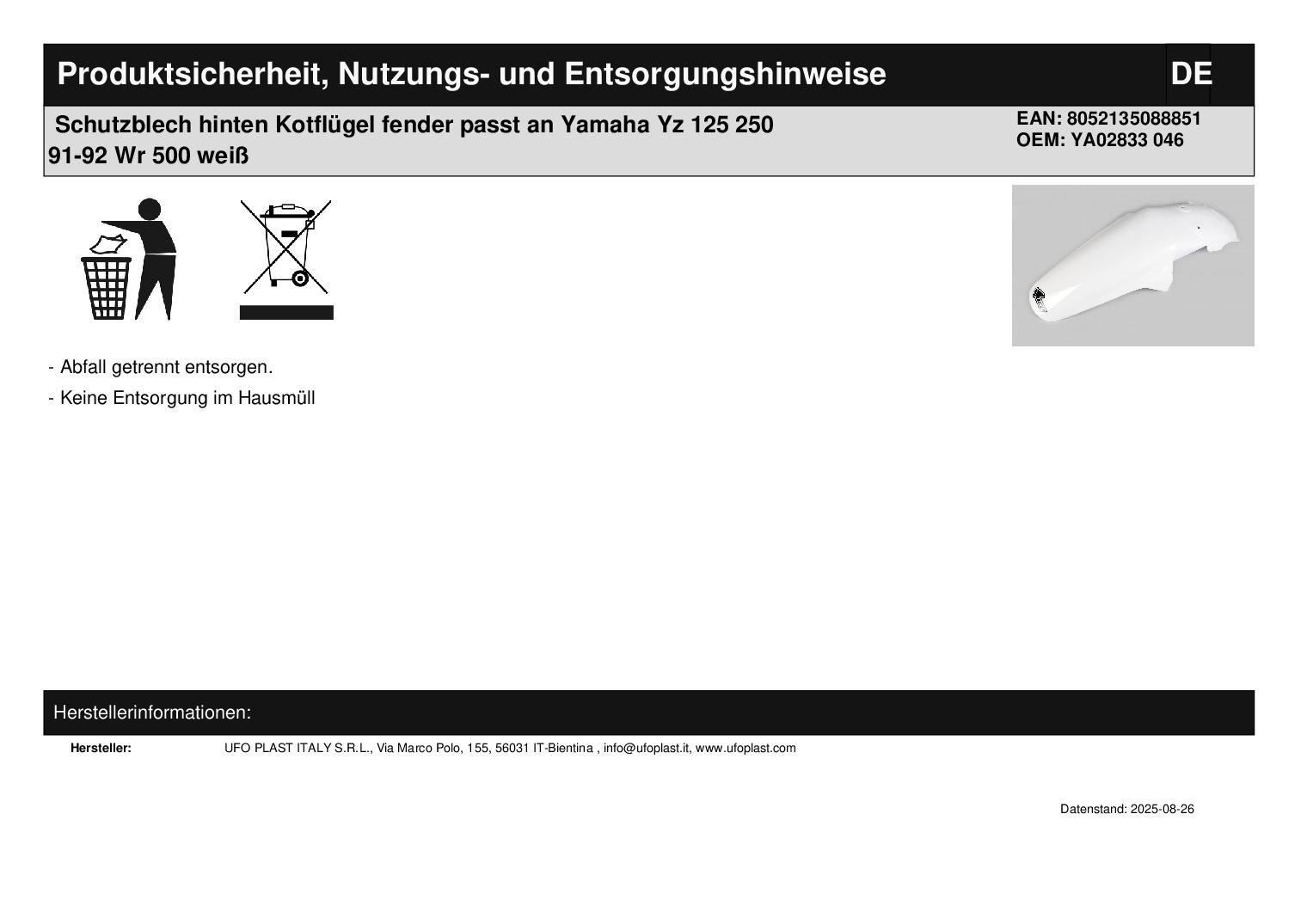 In dieser Auktion gibt es folgenden Artikel zu kaufen: Schutzblech hinten (ähnlich Foto) Modell: passend für Yamaha YZ 125, 250 Bj.: 91 - 92 WR 500 Bj.: 92 - 93 Lieferumfang: 1 Stück Artikelzustand: neu Bei Unklarheiten oder Fragen bitte erst E-Mail schreiben.