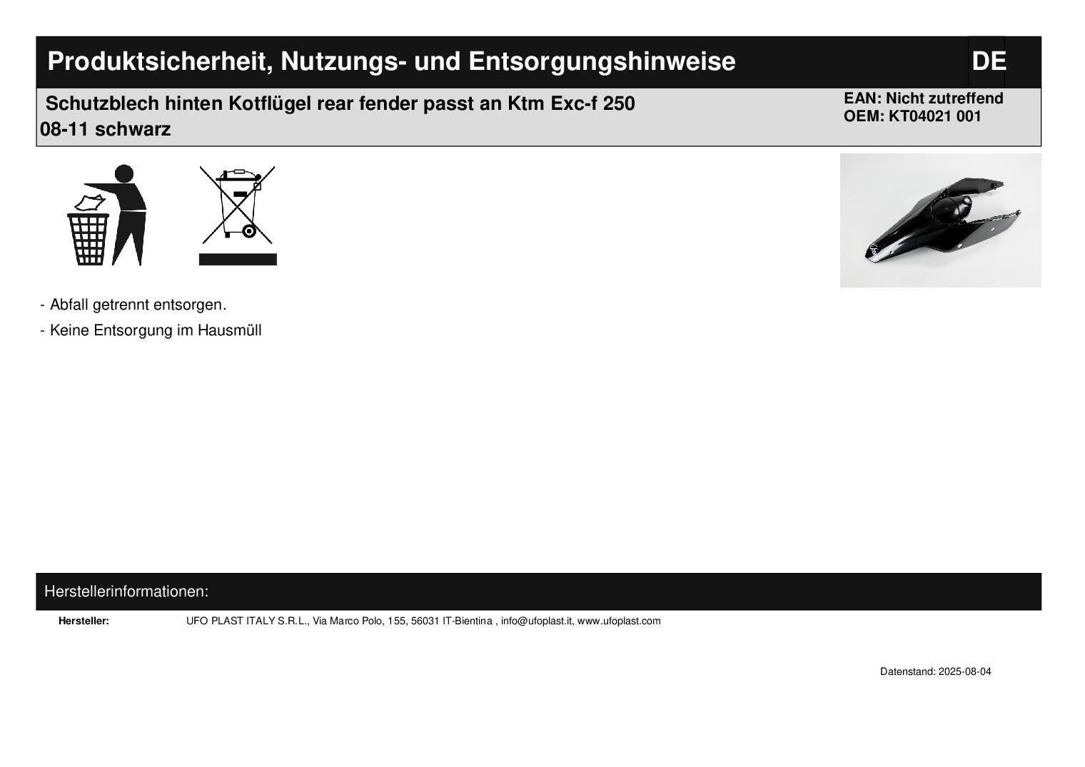 In dieser Auktion gibt es folgenden Artikel zu kaufen: Schutzblech (siehe Foto) Fahrzeug: passend für Ktm EXC-F 250 Bj.: 2008 - 2011 Lieferumfang: siehe Foto Artikelzustand: neu aus Geschäftsauflösung, mit minimalen Lagerspuren; Zustand siehe Foto Es handelt sich hierbei um kein Originalteil Bei Unklarheiten oder Fragen bitte erst E-Mail schreiben.