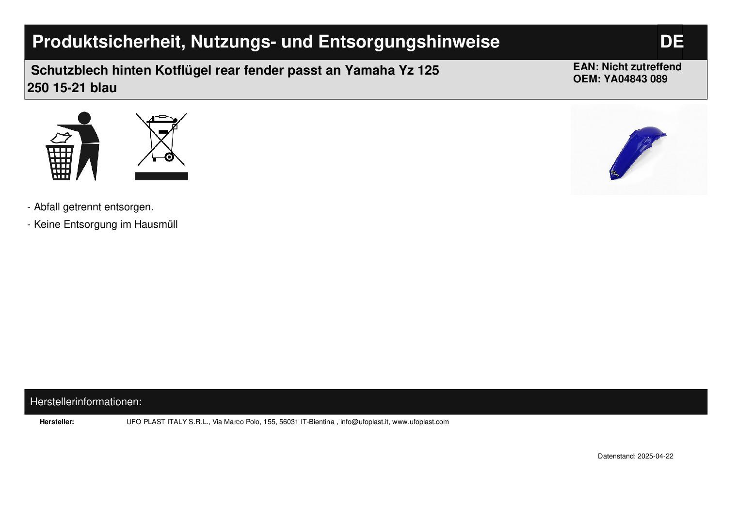 In dieser Auktion gibt es folgenden Artikel zu kaufen: Schutzblech (ähnlich Foto) Fahrzeug: passend für Yamaha YZ 125 Bj.: 15 - 21 YZ 250 Bj.: 15 - 21 Lieferumfang: siehe Foto Artikelzustand: neu aus Geschäftsauflösung, mit Lagerspuren wie leichten Kratzern; Originalverpackung fehlt; Zustand ähnlich Foto Bei Unklarheiten oder Fragen bitte erst E-Mail schreiben.