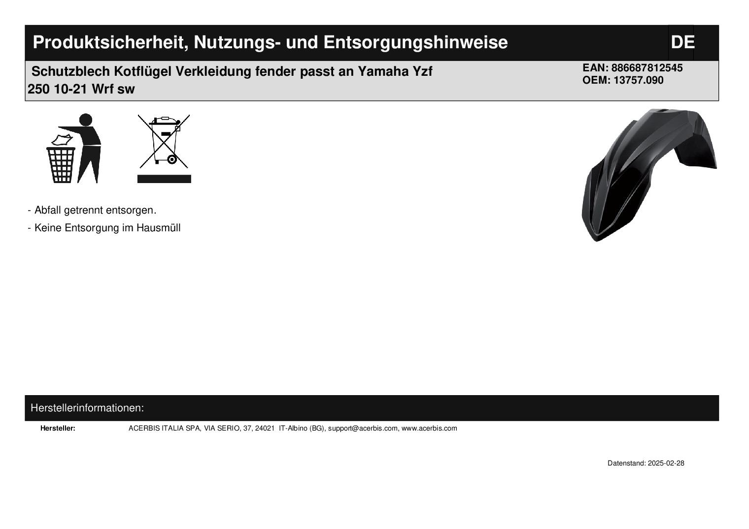 In dieser Auktion gibt es folgenden Artikel zu kaufen: Schutzblech (ähnlich Foto) Modell: passend für Yamaha YZ 125 Bj.: 2015 - 2021 (2-Takt) YZ 250 Bj.: 2015 - 2021 (2-Takt) YZF 250 Bj.: 2010 - 2021 (4-Takt) YZF 450 Bj.: 2010 - 2017 (4-Takt) WRF 450 Bj.: 2012 - 2018 (4-Takt) Lieferumfang: 1 Stück Artikelzustand: neu Bei Unklarheiten oder Fragen bitte erst E-Mail schreiben.