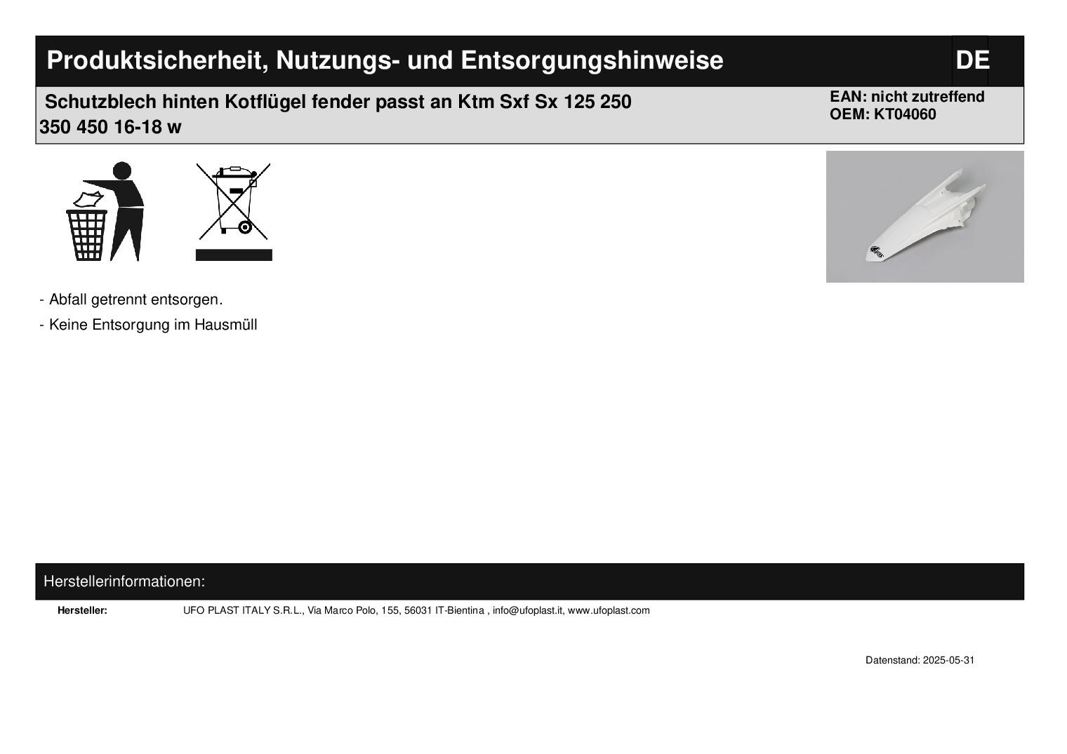 In dieser Auktion gibt es folgenden Artikel zu kaufen: Schutzblech (ähnlich Foto) Fahrzeug: passend für Ktm Sx-, Sxf-Modelle Bj.: 16 - 18 (2- und 4-Takt) Lieferumfang: siehe Foto Artikelzustand: neu aus Geschäftsauflösung, mit leichten Lagerspuren, Originalverpackung fehlt; Zustand ähnlich Foto Es handelt sich hierbei um kein Originalteil Bei Unklarheiten oder Fragen bitte erst E-Mail schreiben.