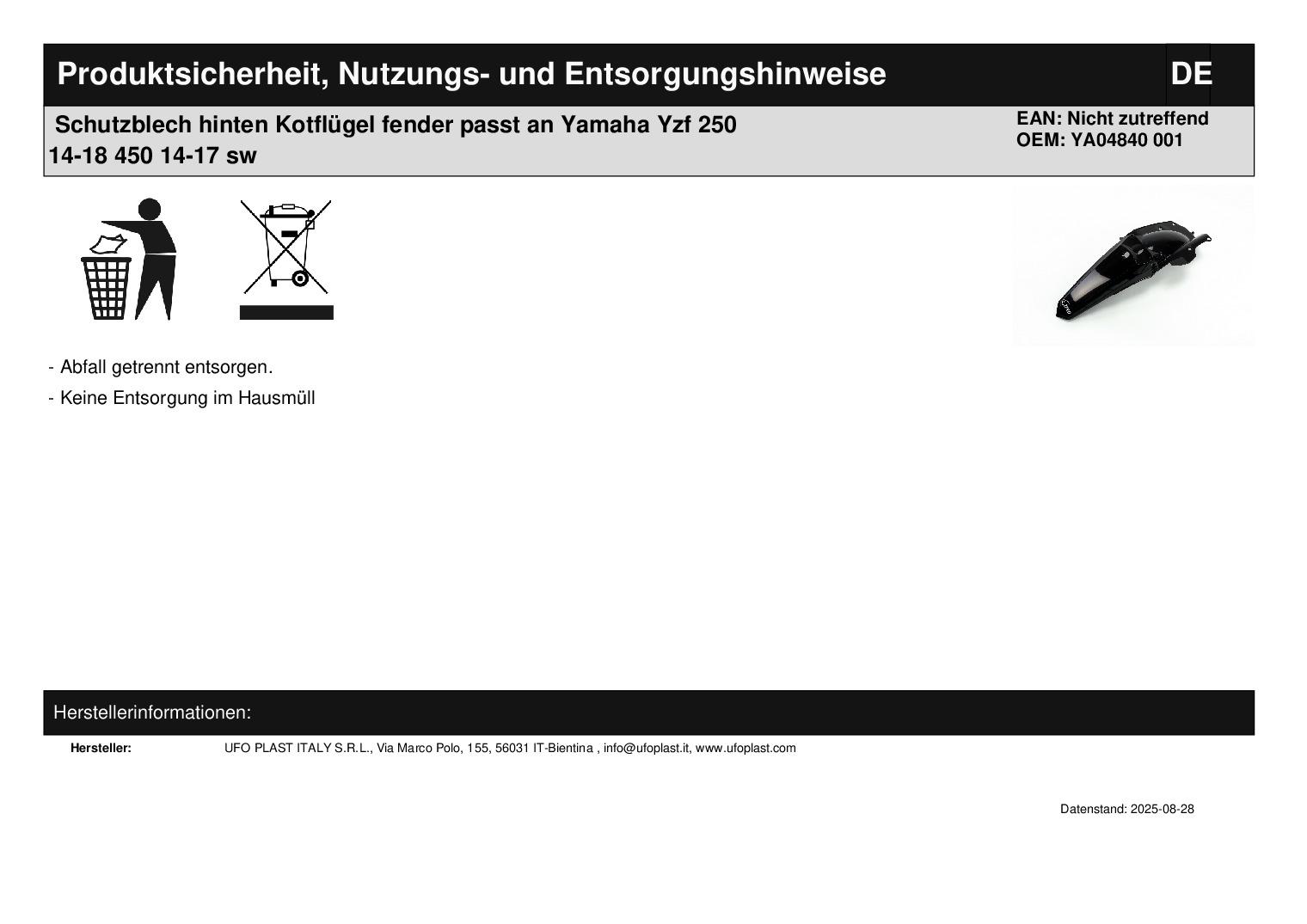 In dieser Auktion gibt es folgenden Artikel zu kaufen: Schutzblech (ähnlich Foto) Fahrzeug: passend für Yamaha YZF 250 Bj.: 14 - 18 YZF 450 Bj.: 14 - 17 Lieferumfang: siehe Foto Artikelzustand: neu Bei Unklarheiten oder Fragen bitte erst E-Mail schreiben.