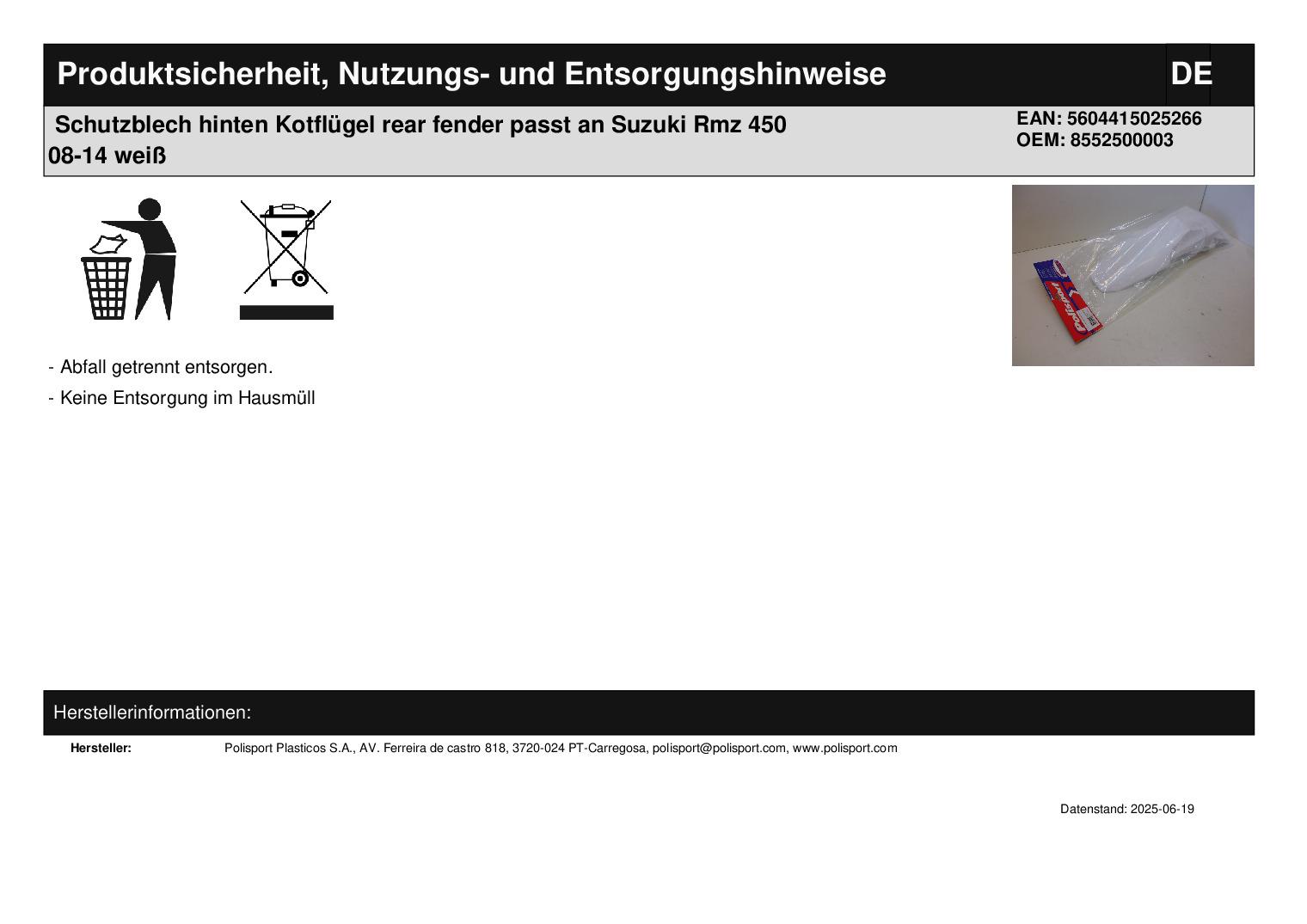 In dieser Auktion gibt es folgenden Artikel zu kaufen: Schutzblech hinten (siehe Foto) Modell: passend für Suzuki RMZ 450 Bj.: 08 - 14 Lieferumfang: siehe Foto Artikelzustand: neu
