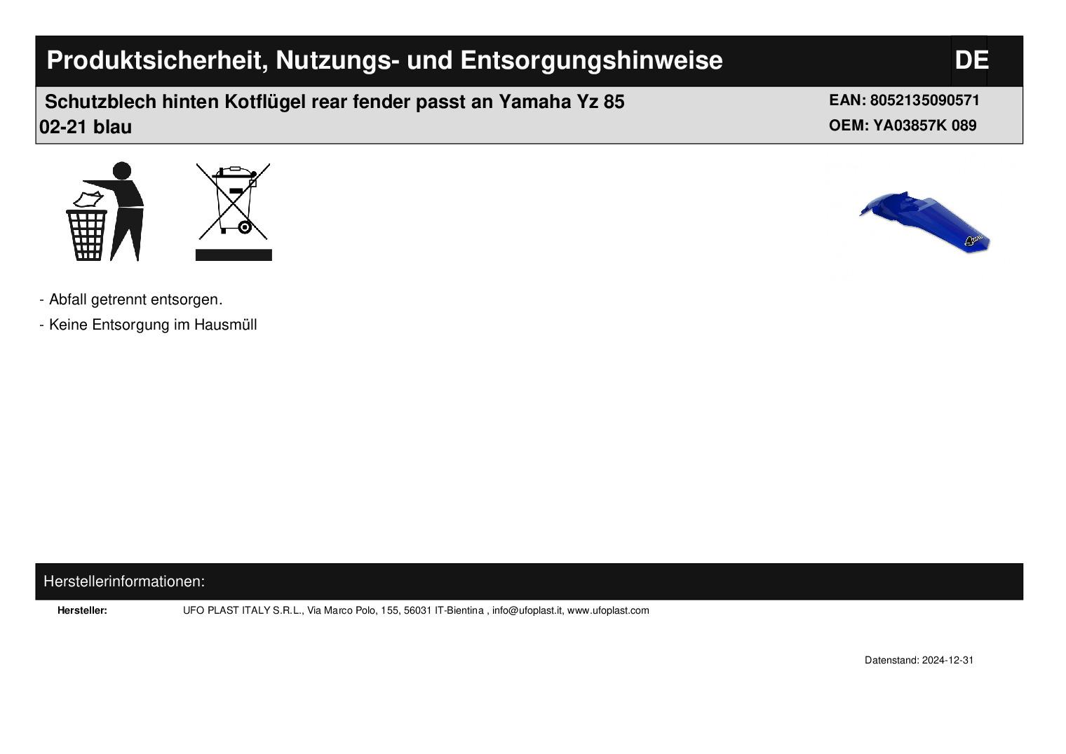 In dieser Auktion gibt es folgenden Artikel zu kaufen: Schutzblech (ähnlich Foto) Fahrzeug: passend für Yamaha YZ 85 Bj.: 02 - 21 Lieferumfang: siehe Foto Artikelzustand: neu Bei Unklarheiten oder Fragen bitte erst E-Mail schreiben.