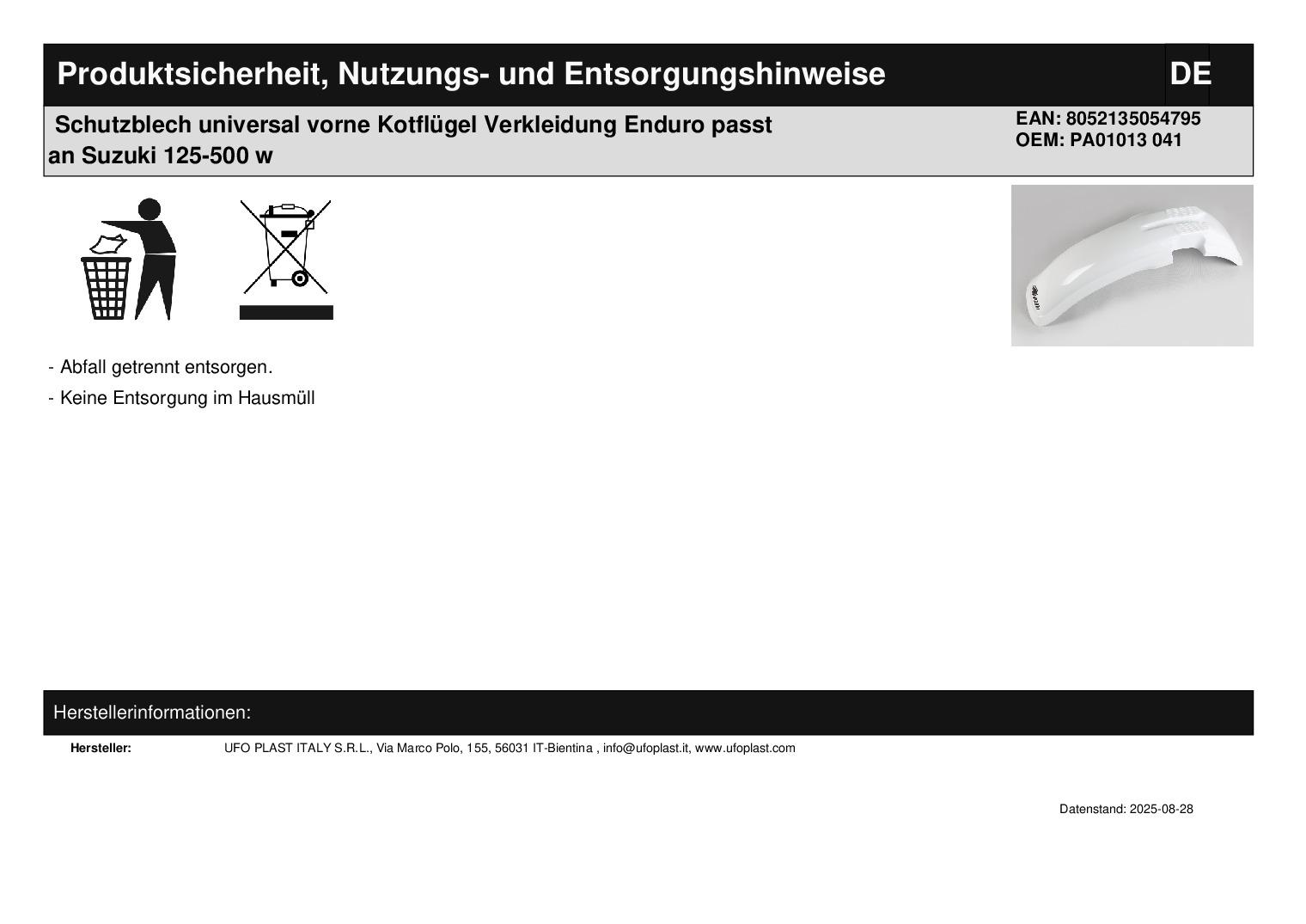 In dieser Auktion gibt es folgenden Artikel zu kaufen: Schutzblech vorne (siehe Foto) Fahrzeug: universal 125, 250, 500 cc Lieferumfang: siehe Foto Artikelzustand: neu Bei Unklarheiten oder Fragen bitte erst E-Mail schreiben.