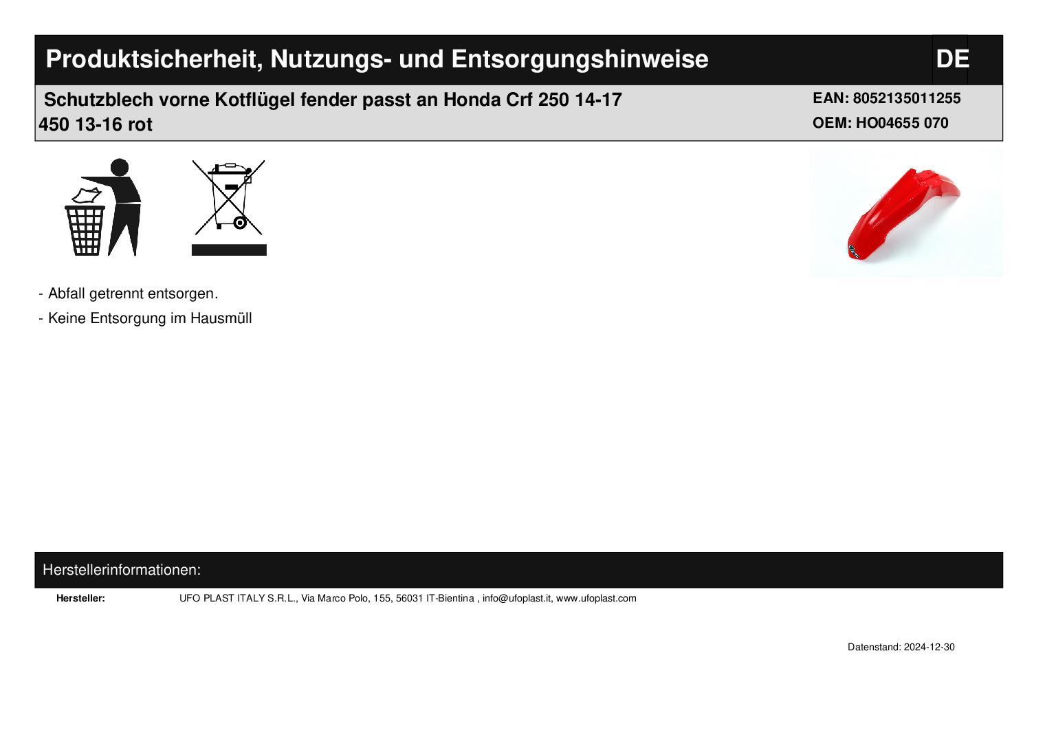 In dieser Auktion gibt es folgenden Artikel zu kaufen: Schutzblech (ähnlich Foto) Fahrzeug: passend für Honda Cr-f 250 R Bj.: 14 - 17 Cr-f 450 R Bj.: 13 - 16 Lieferumfang: siehe Foto Artikelzustand: neu Hierbei handelt es sich um kein Originalteil! Bei Unklarheiten oder Fragen bitte erst E-Mail schreiben.