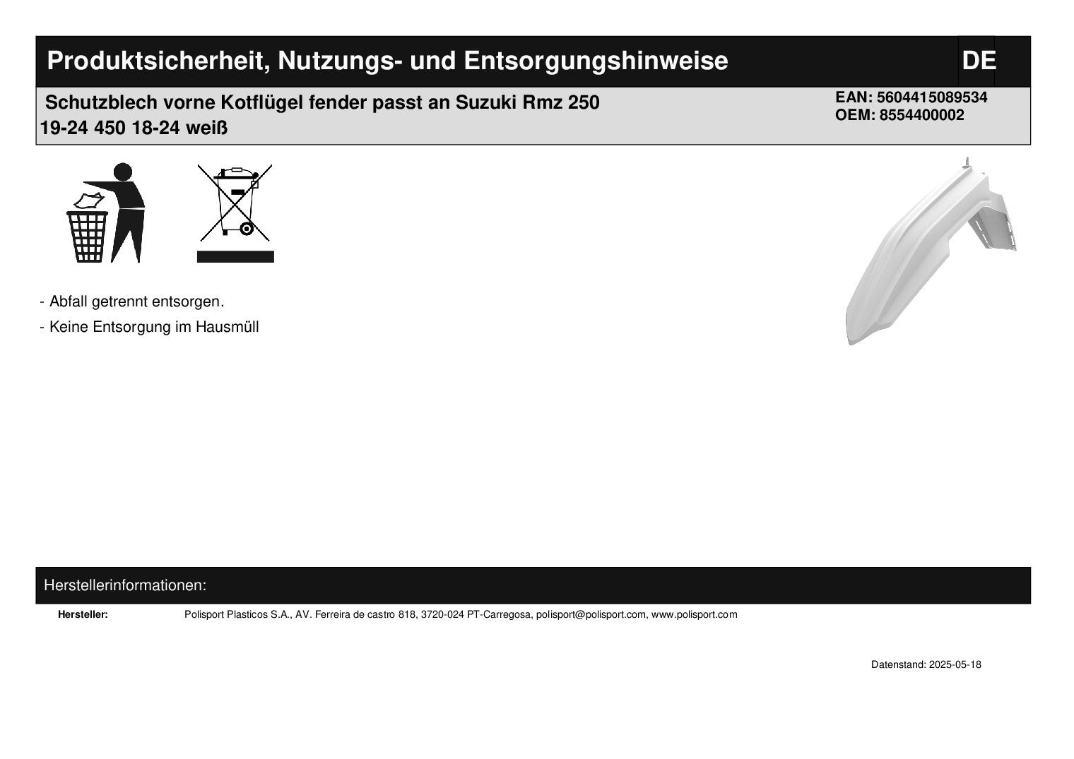 Schutzblech vorne (siehe Foto)