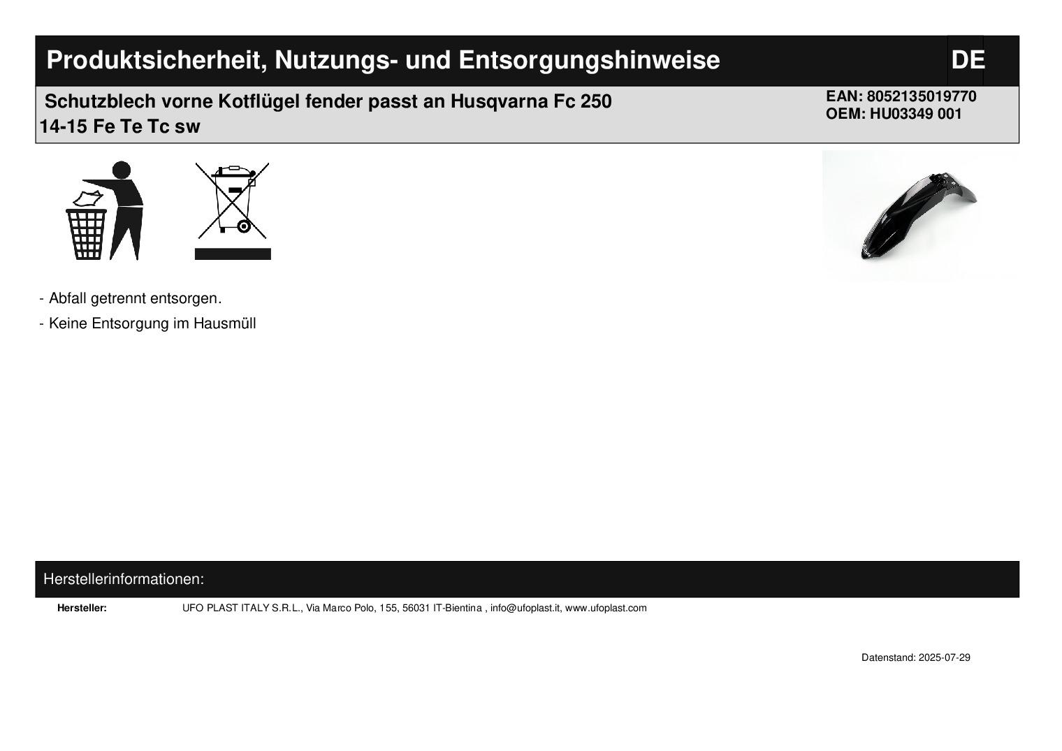 In dieser Auktion gibt es folgenden Artikel zu kaufen: Schutzblech vorne (siehe Foto) Fahrzeug: passend für Husqvarna TC 125 Bj.: 14 - 15 TC 250 Bj.: 14 - 16 FC 250, 350, 450 Bj.: 14 - 15 TE 125, 250, 300 Bj.: 15 - 16 FE 250, 350, 450, 501 Bj.: 15 - 16 Lieferumfang: siehe Foto Artikelzustand: neu Bei Unklarheiten oder Fragen bitte erst E-Mail schreiben.