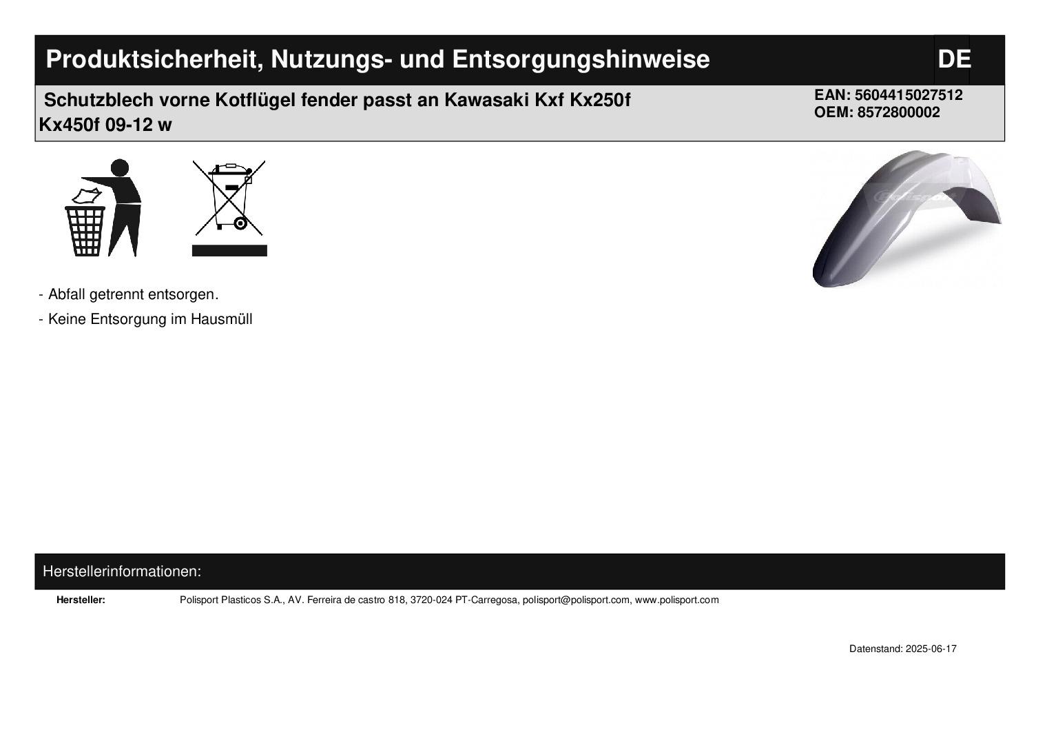 In dieser Auktion gibt es folgenden Artikel zu kaufen: Schutzblech vorne (siehe Foto) Modell: passend für Kawasaki KXF 250 Bj.: 2009 - 2012 KXF 450 Bj.: 2009 - 2012 Lieferumfang: siehe Foto Artikelzustand: neu aus Geschäftsauflösung, mit minimalen Lagerspuren; Zustand siehe Foto Bei Unklarheiten oder Fragen bitte erst E-Mail schreiben.