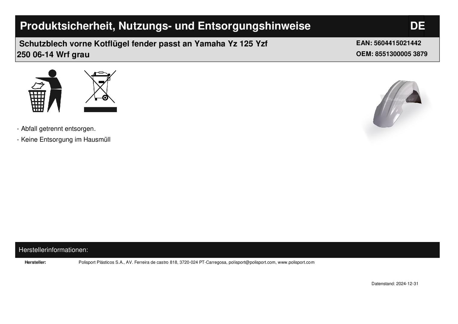 Titel: Schutzblech vorne Kotflügel fender passt an Yamaha Yz 125 Yzf 250 06-14 Wrf we
