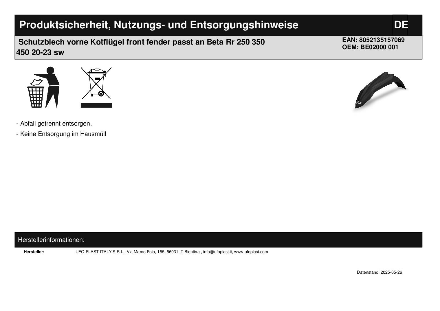 In dieser Auktion gibt es folgenden Artikel zu kaufen: Schutzblech vorne (ähnlich Foto) Fahrzeug: passend für Beta RR 250, 300, 350, 400, 450 Bj.: 20 - 23 Lieferumfang: siehe Foto Artikelzustand: neu Bei Unklarheiten oder Fragen bitte erst E-Mail schreiben.