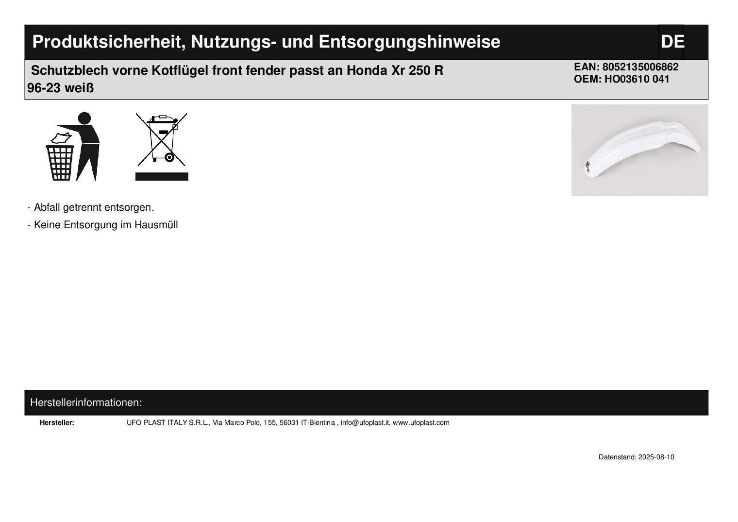 In dieser Auktion gibt es folgenden Artikel zu kaufen: Schutzblech (siehe Foto) Fahrzeug: passend für Honda XR 250 R Bj.: 96 - 23 XR 400 R Bj.: 96 - 23 Lieferumfang: siehe Foto Artikelzustand: neu Bei Unklarheiten oder Fragen bitte erst E-Mail schreiben.
